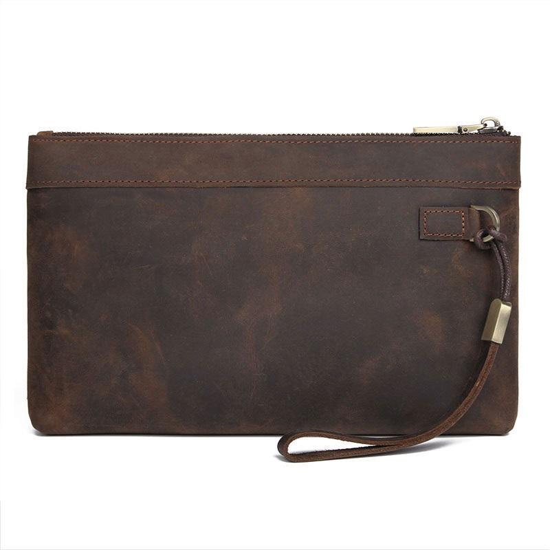 Style: Dark Brown Leather Mens 8 inches Envelope Bag Wristlet Wallet Bag Zipper Clutch Wallet For Men