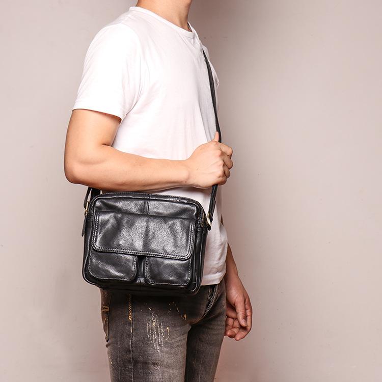 Design: Black LEATHER MEN'S 8 inches Side bag Brown Horizontal Phone Bag MESSENGER BAG Courier Bag FOR MEN