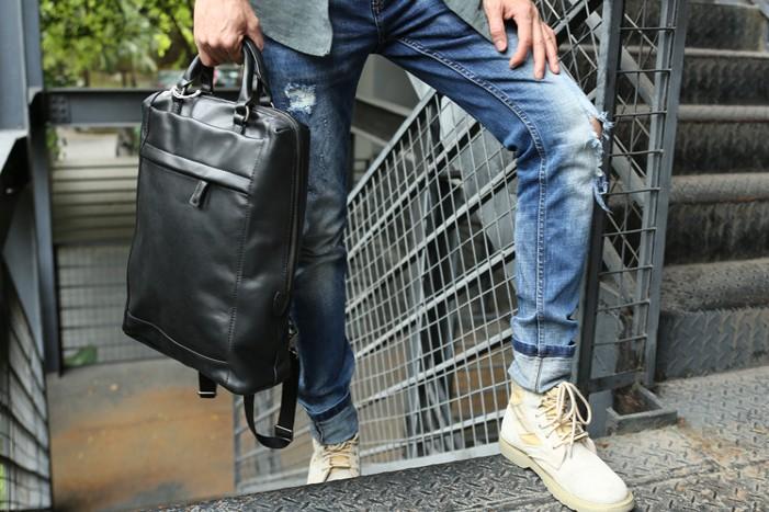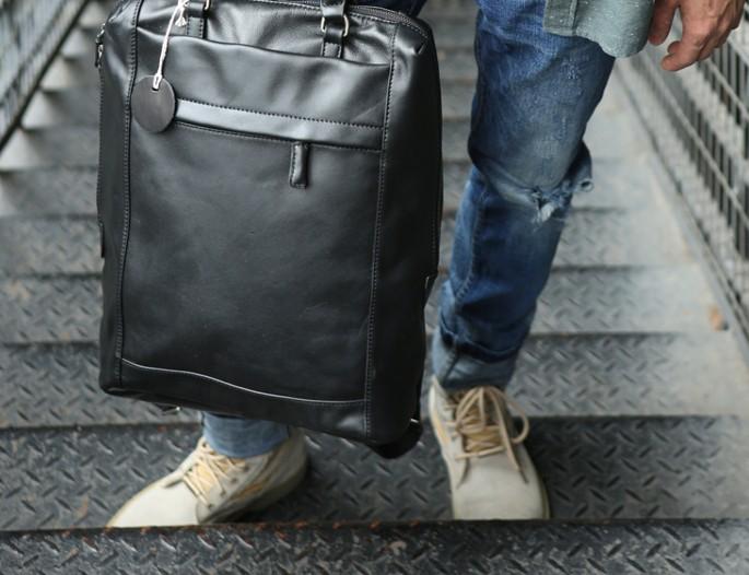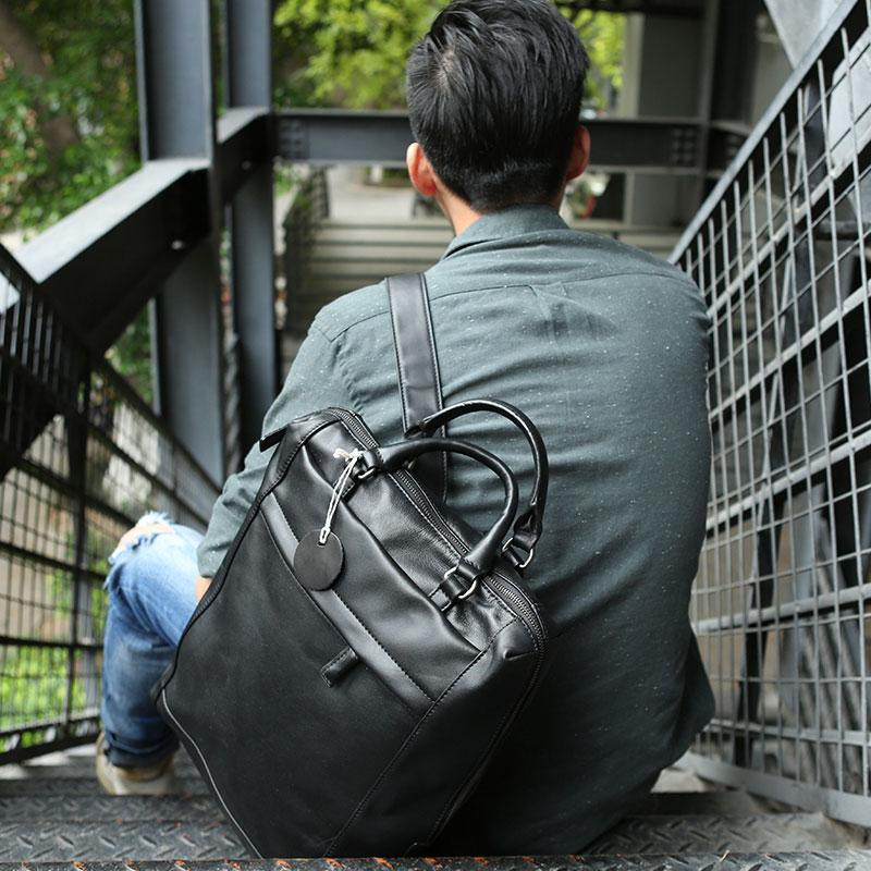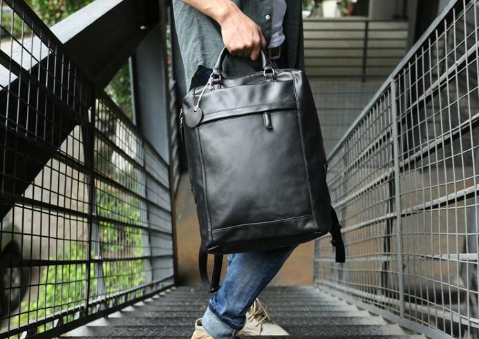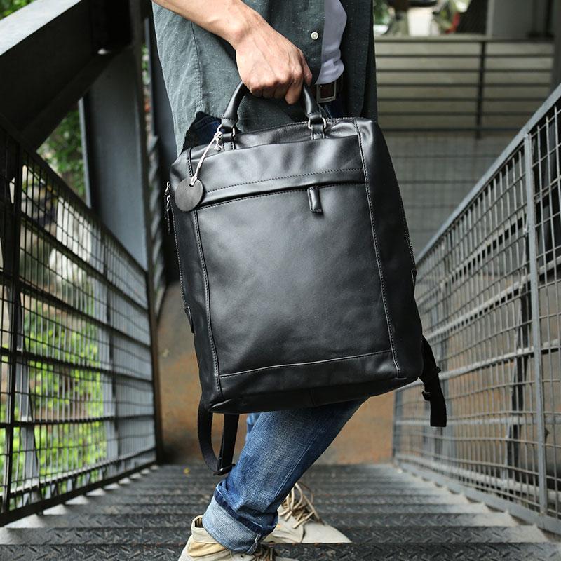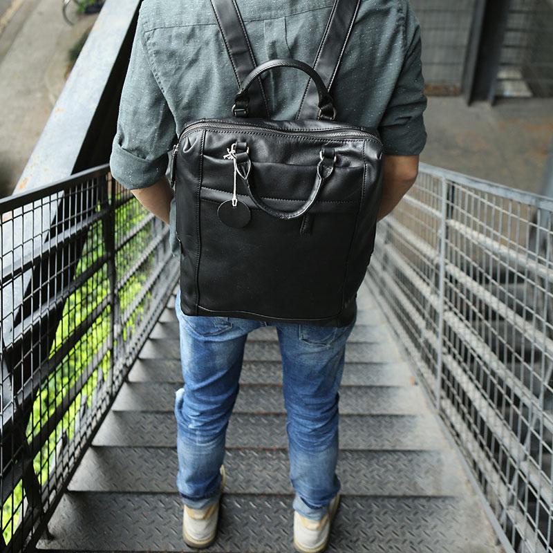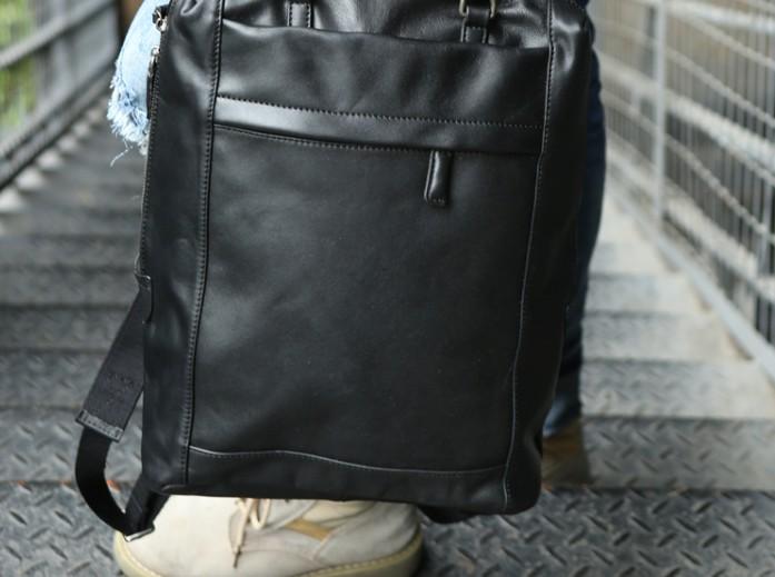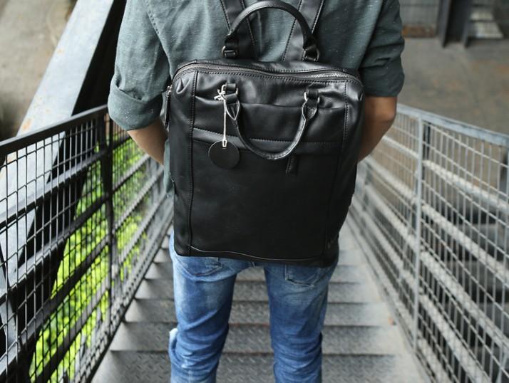 Style: Black Leather Mens Backpack Travel Backpack Laptop Backpack for men