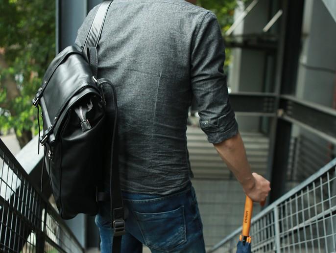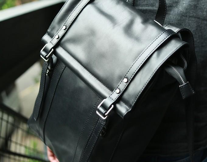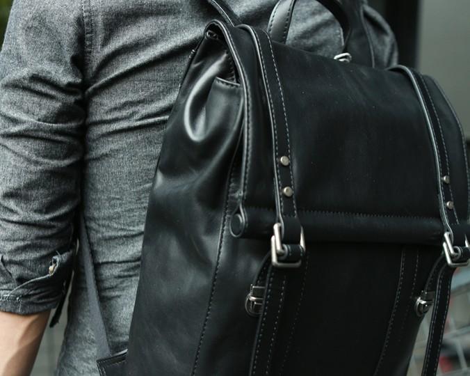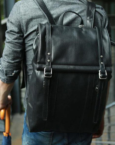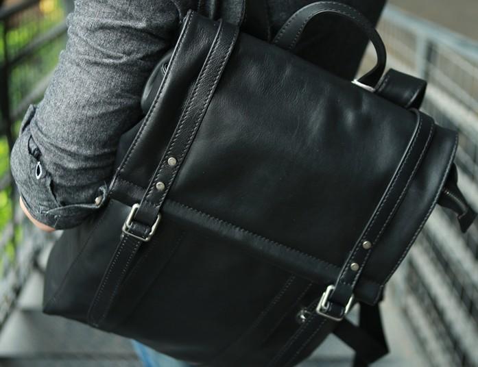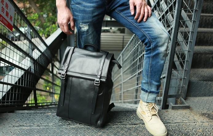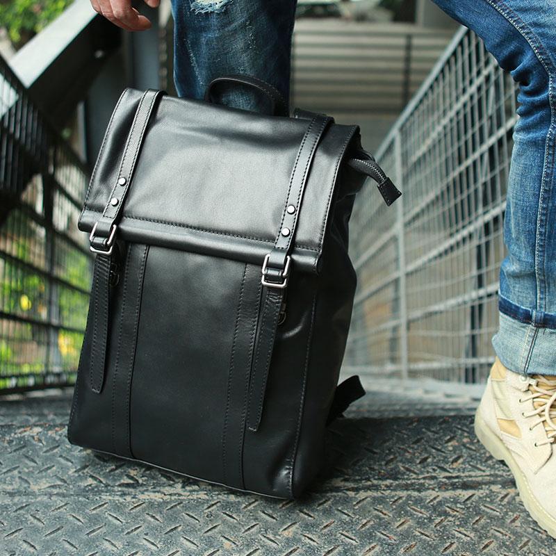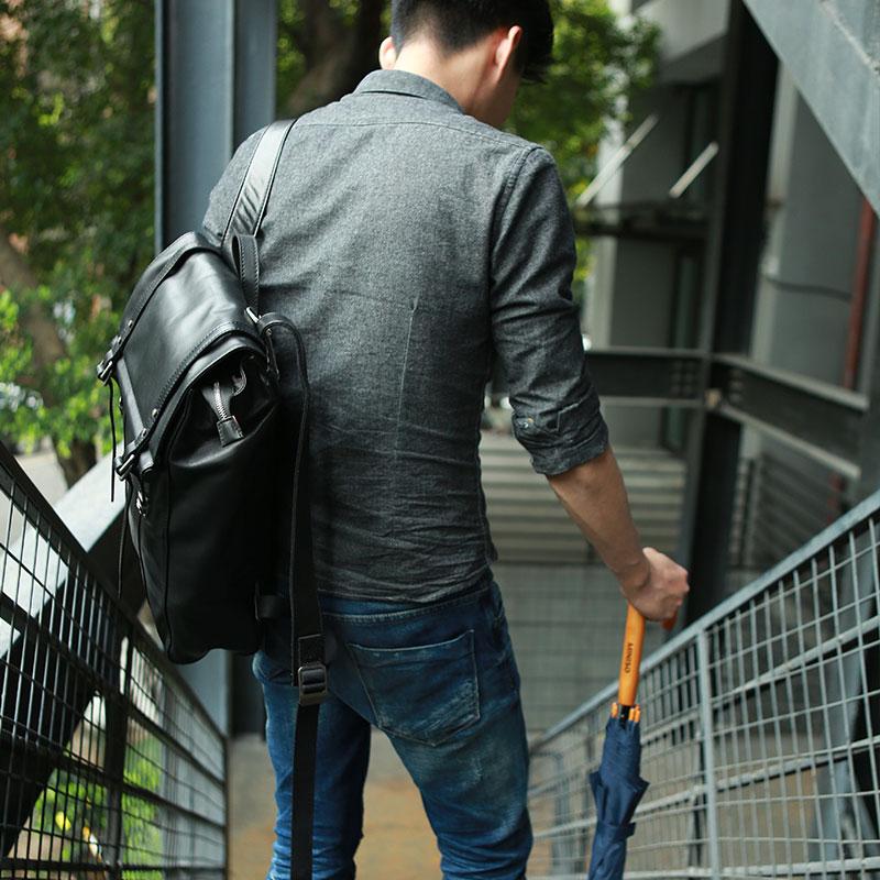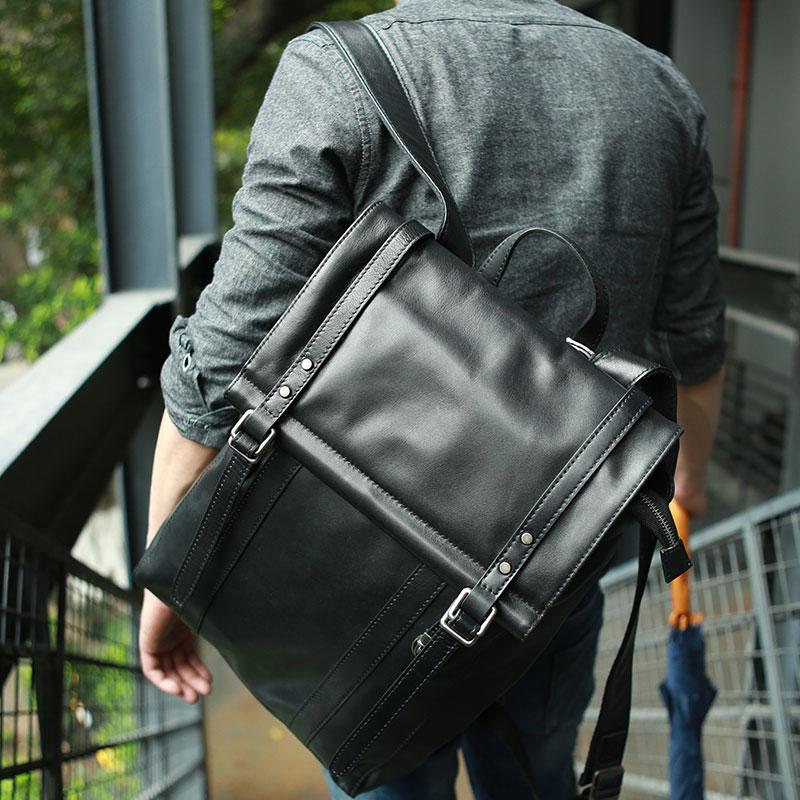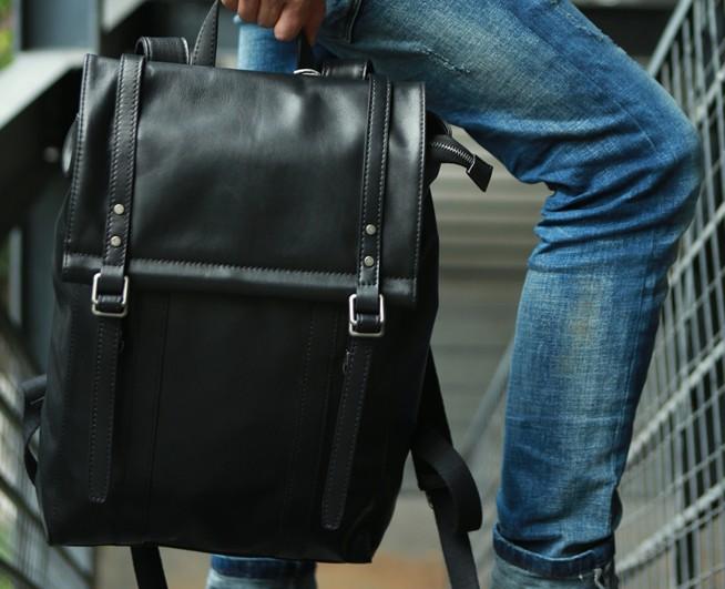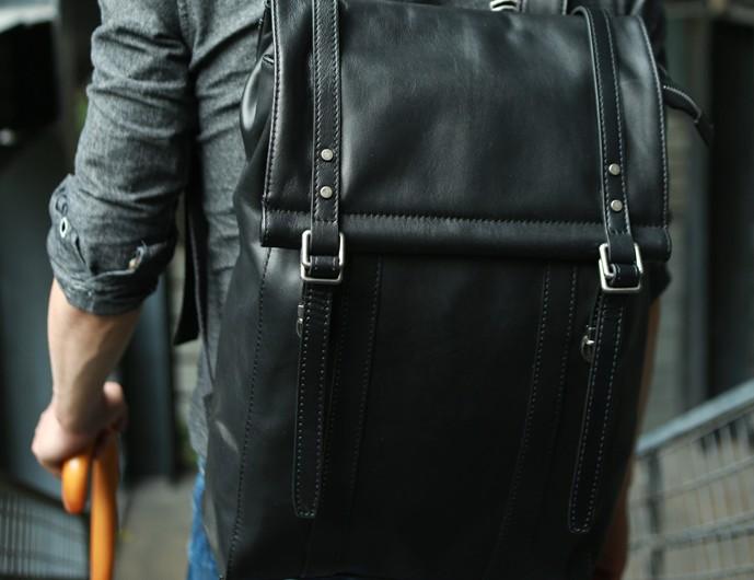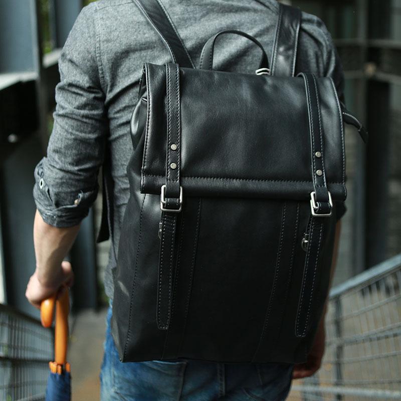 Style: Black Leather Mens Backpack Travel Backpacks Laptop Backpack for men