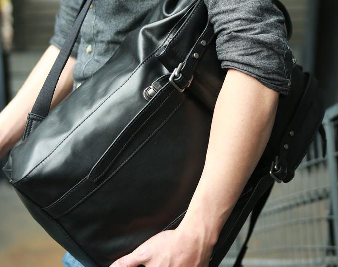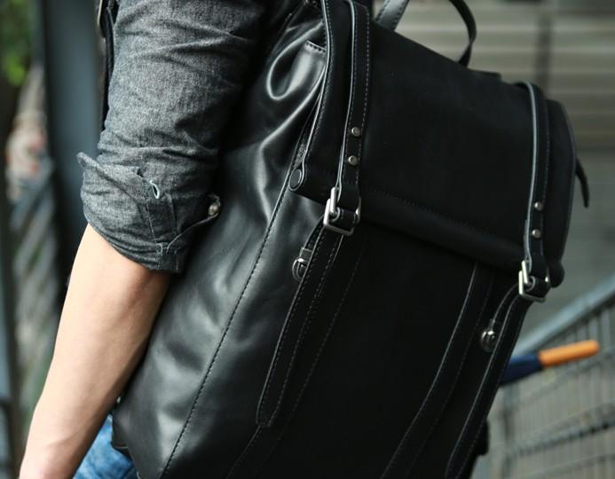Design: Black Leather Mens Backpack Travel Backpacks Laptop Backpack for men