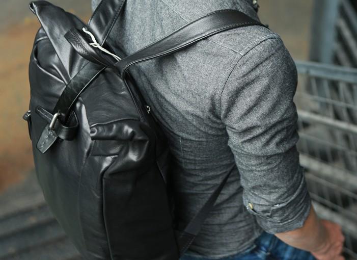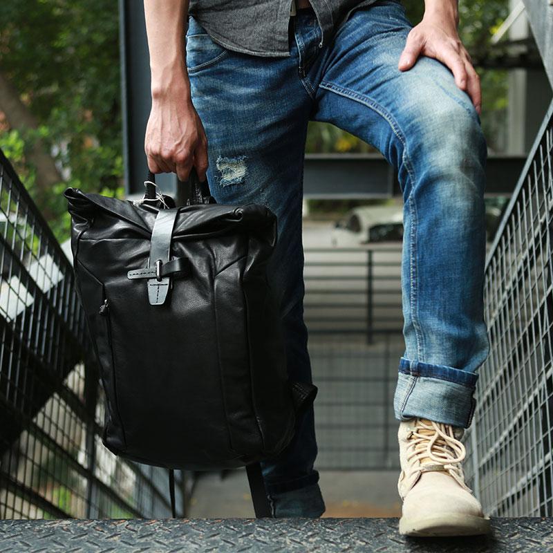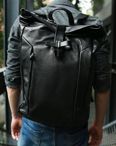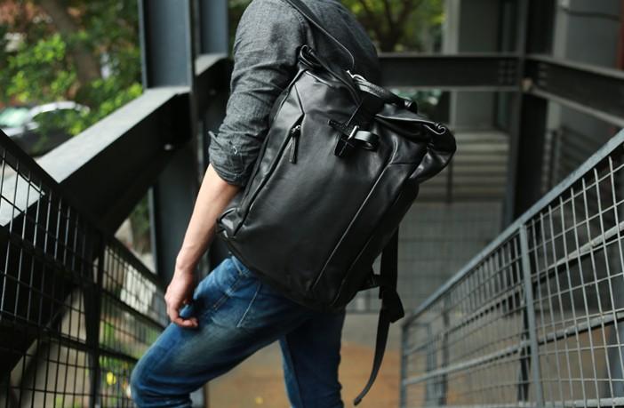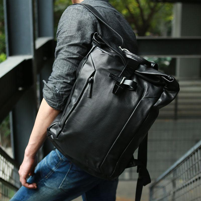 Style: Black Leather Mens Backpacks Travel Backpacks Laptop Backpack for men