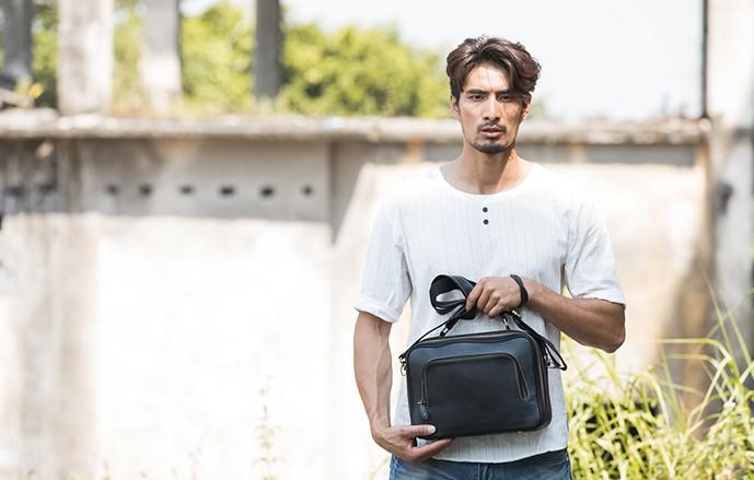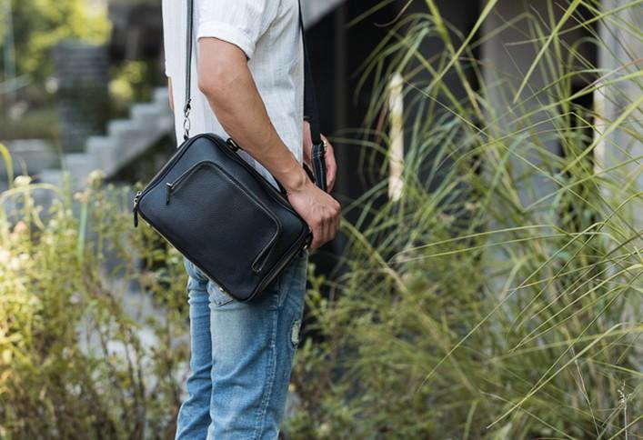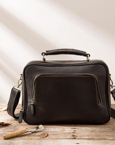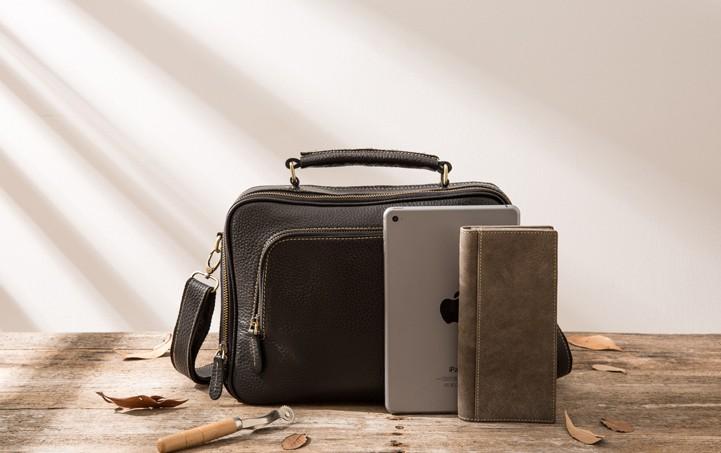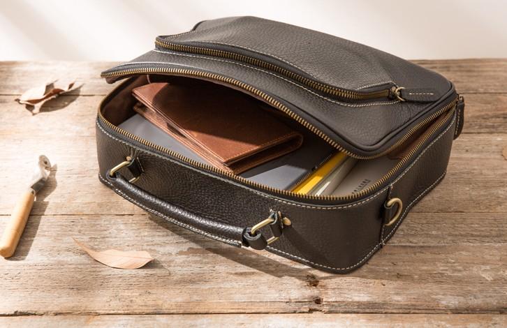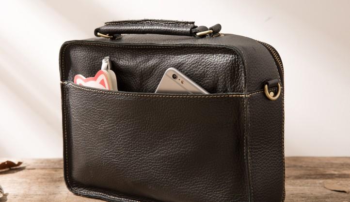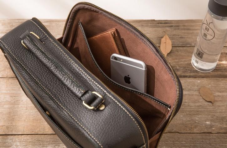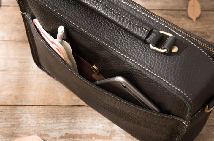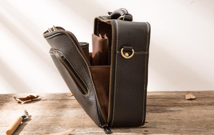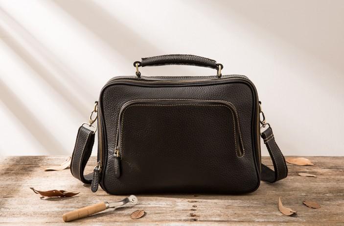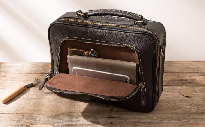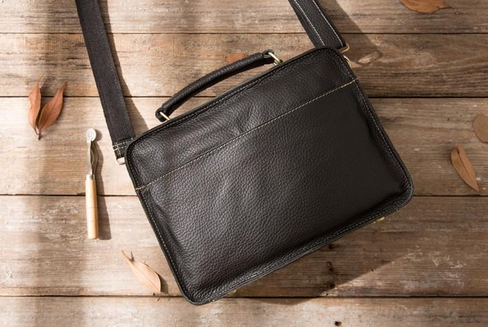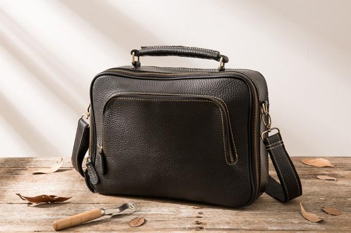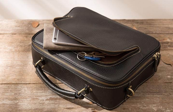 Design: Black Leather Mens Briefcase Work Bag Laptop Bag Business Bag for Men