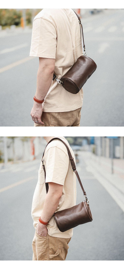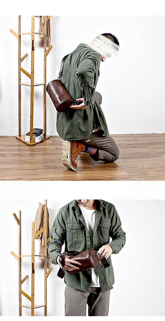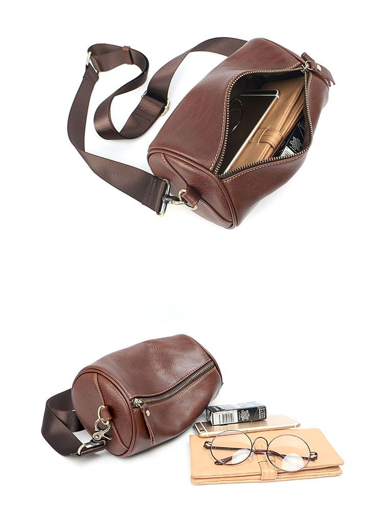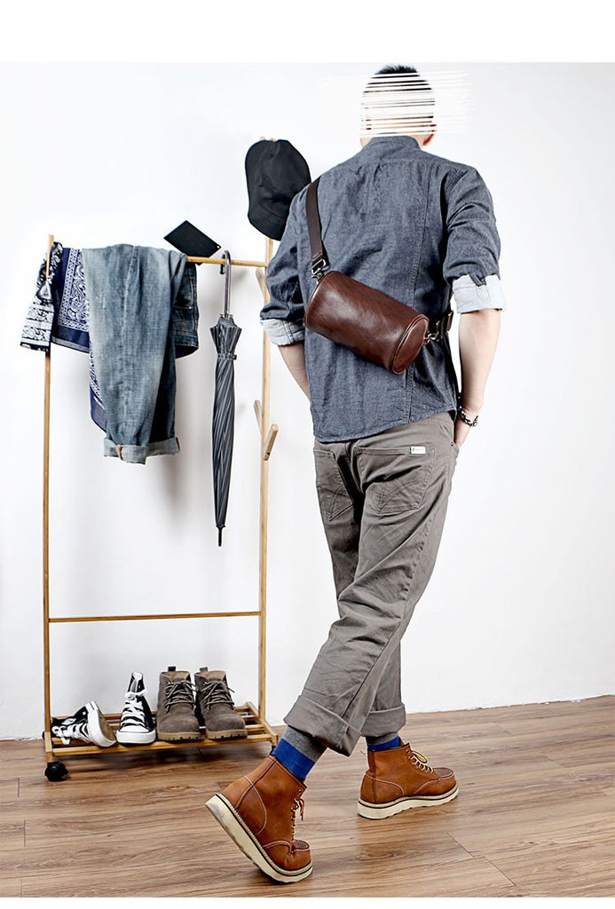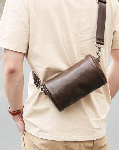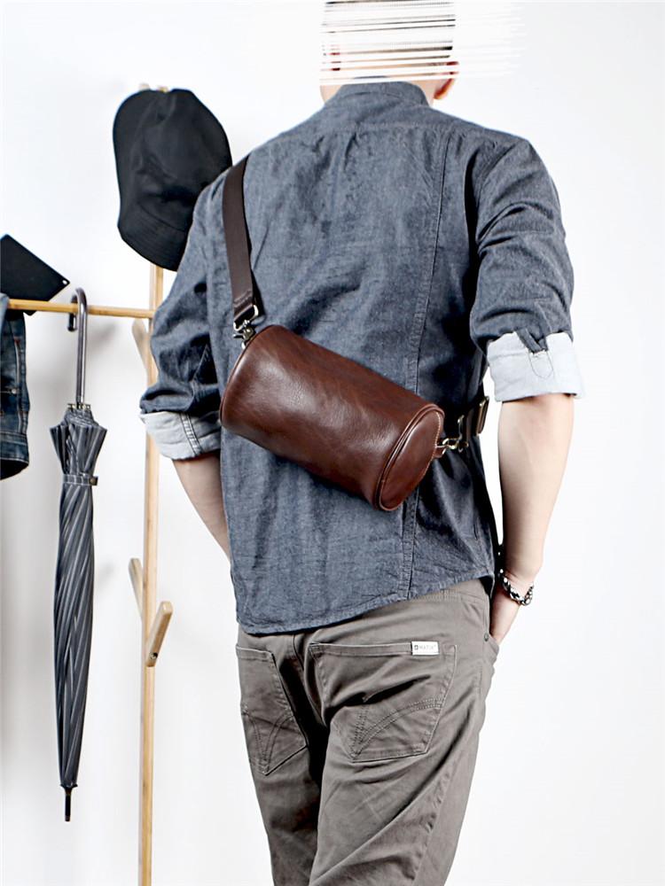 Style: Black Leather Mens Casual Bucket Bag Messenger Bags Brown Postman Bag For Men