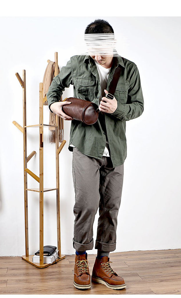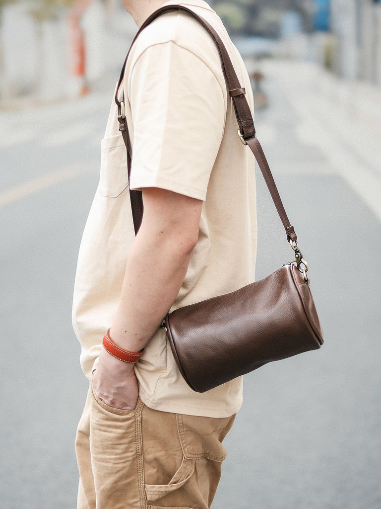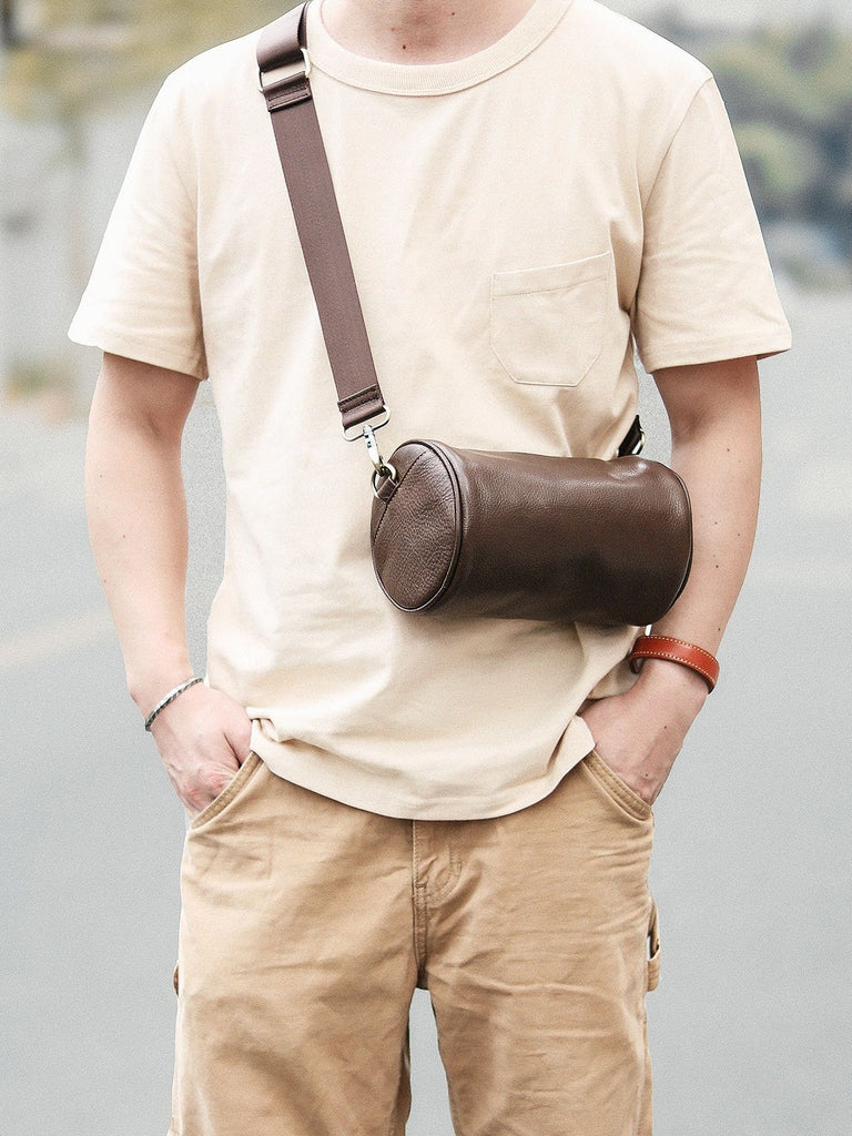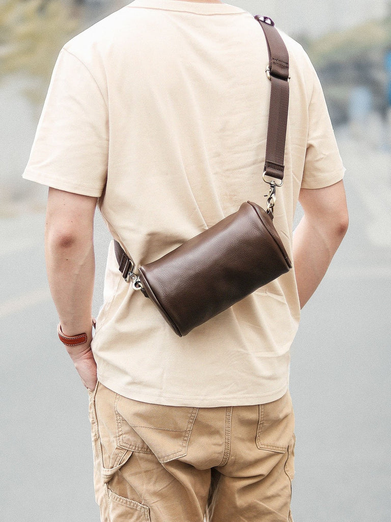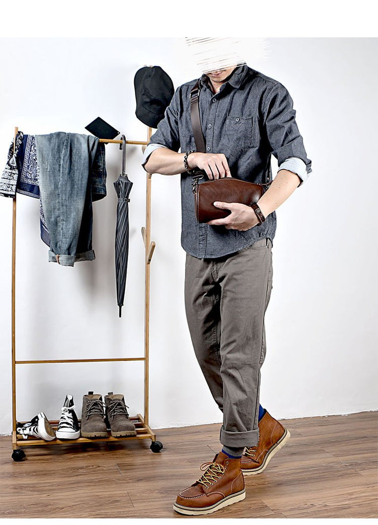 Style: Black Leather Mens Casual Bucket Bag Messenger Bags Brown Postman Bag For Men