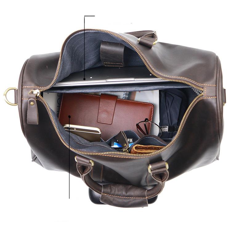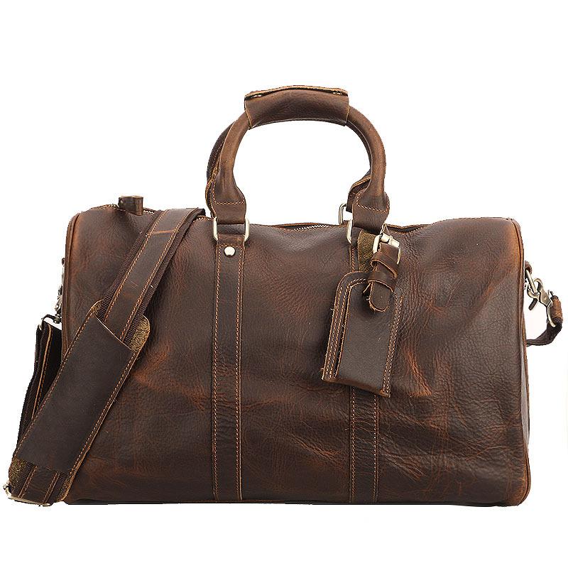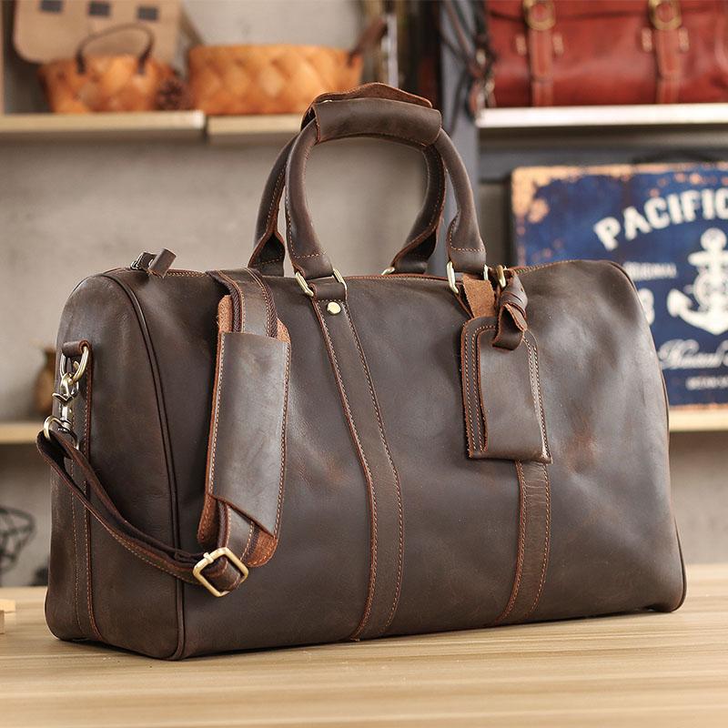 Style: Black Leather Mens Casual Large Travel Bags Shoulder Weekender Bag Duffle Bag For Men
