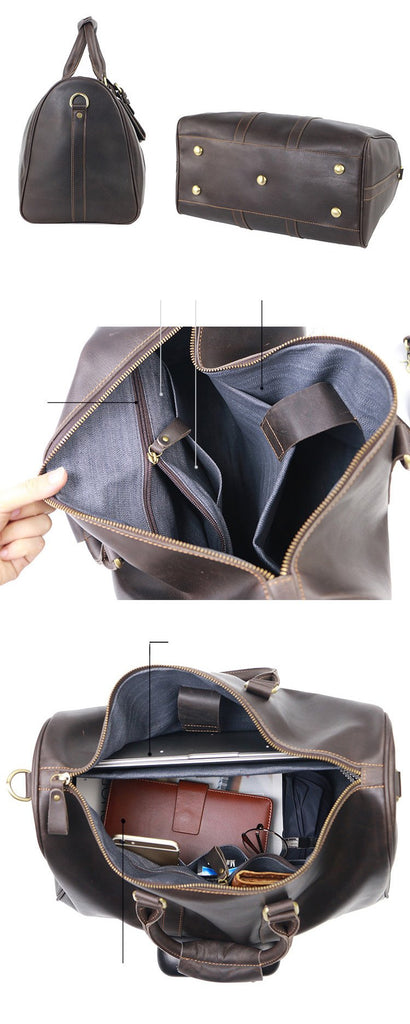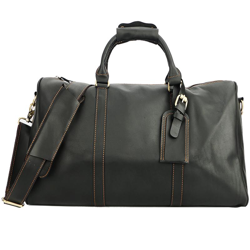 Design: Black Leather Mens Casual Large Travel Bags Shoulder Weekender Bag Duffle Bag For Men