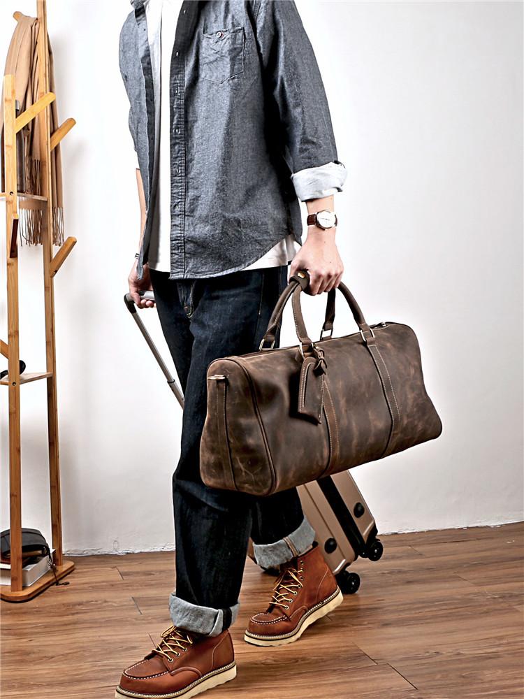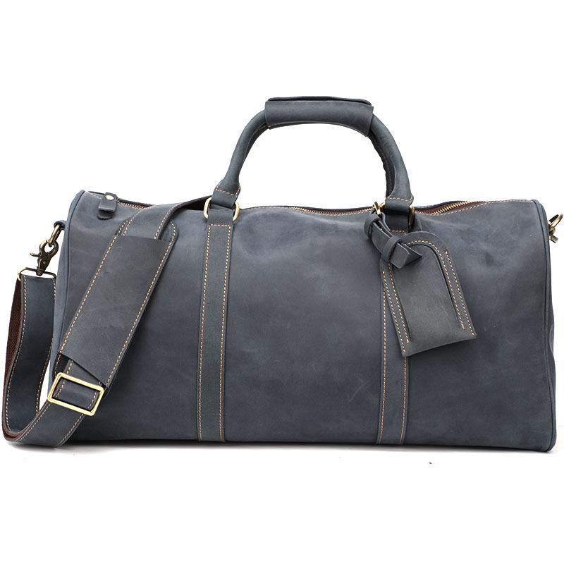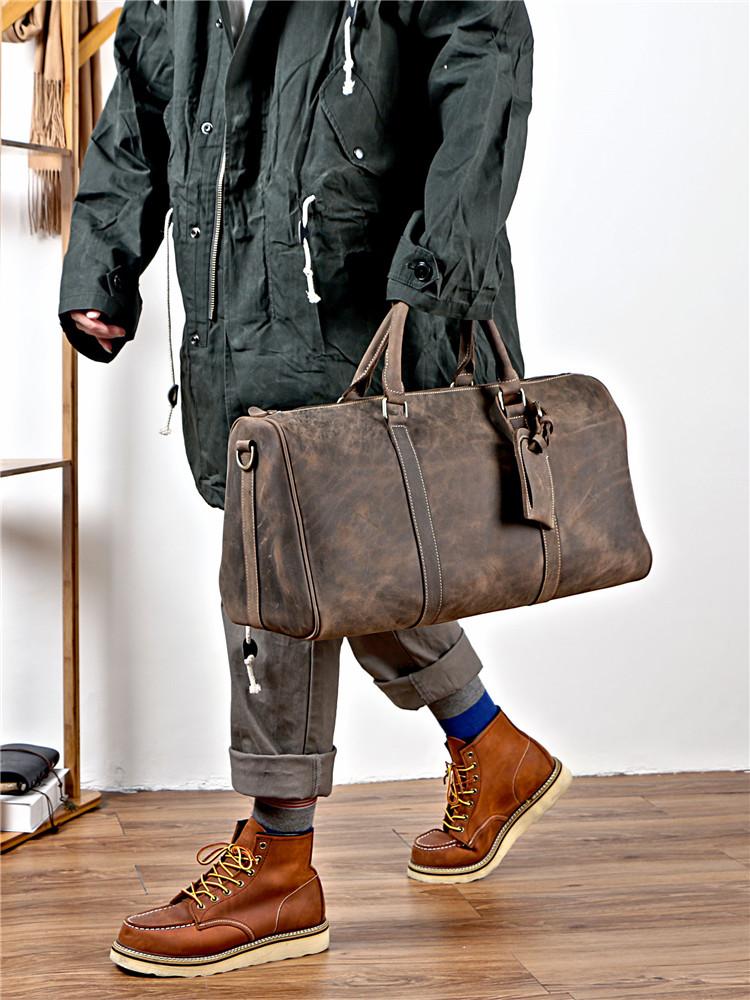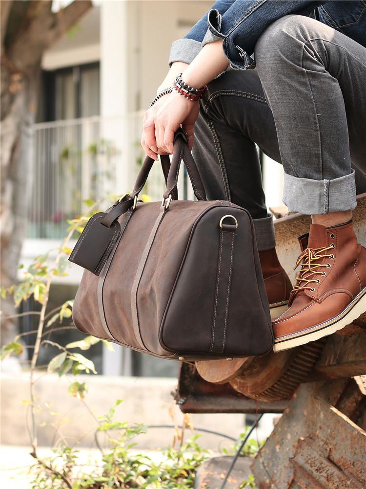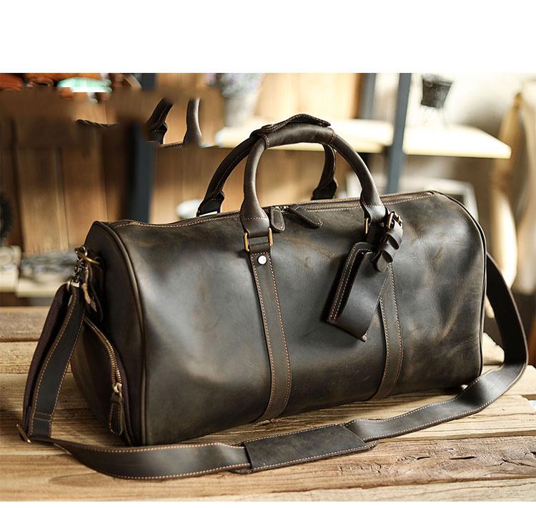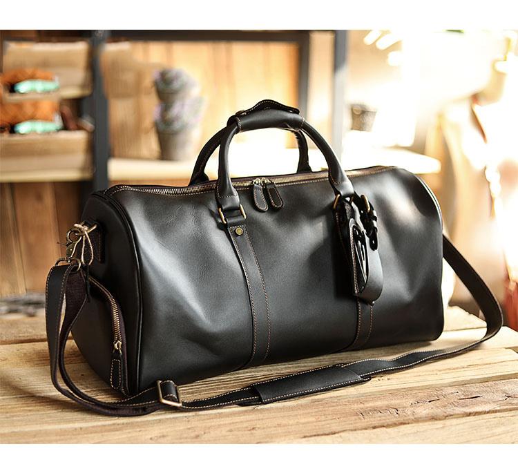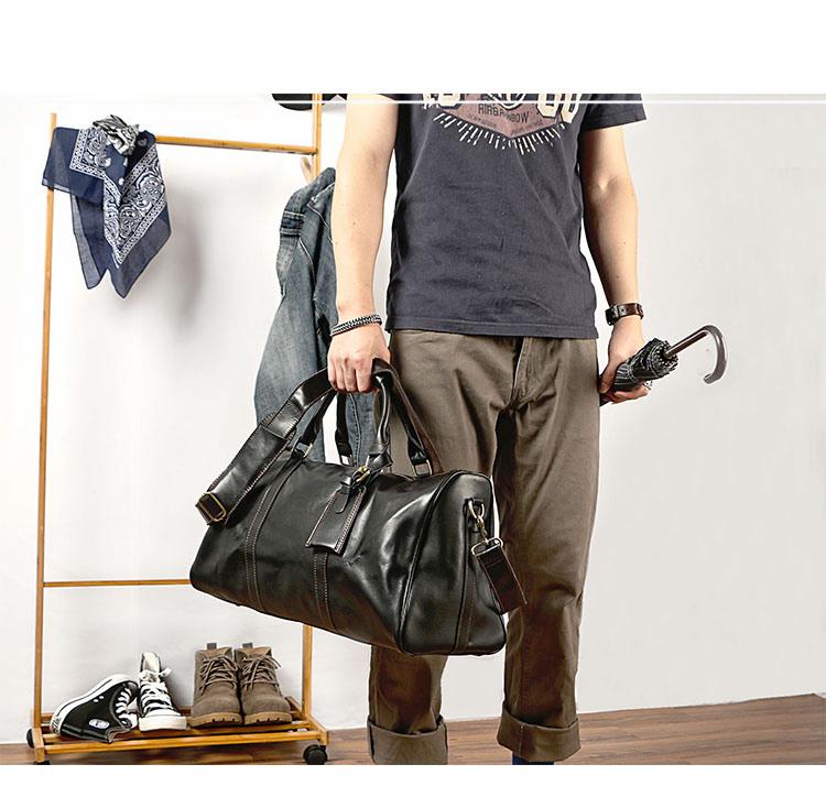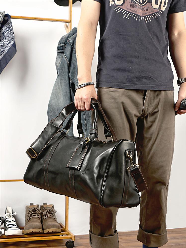 Style: Black Leather Mens Casual Large Travel Bags Shoulder Weekender Bags Dark Gray Duffle Bag For Men