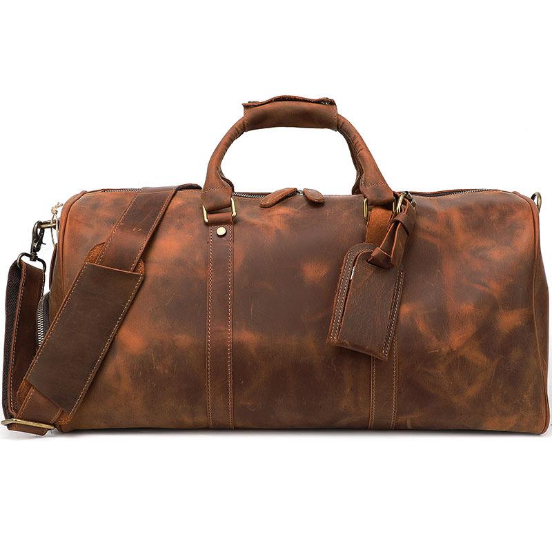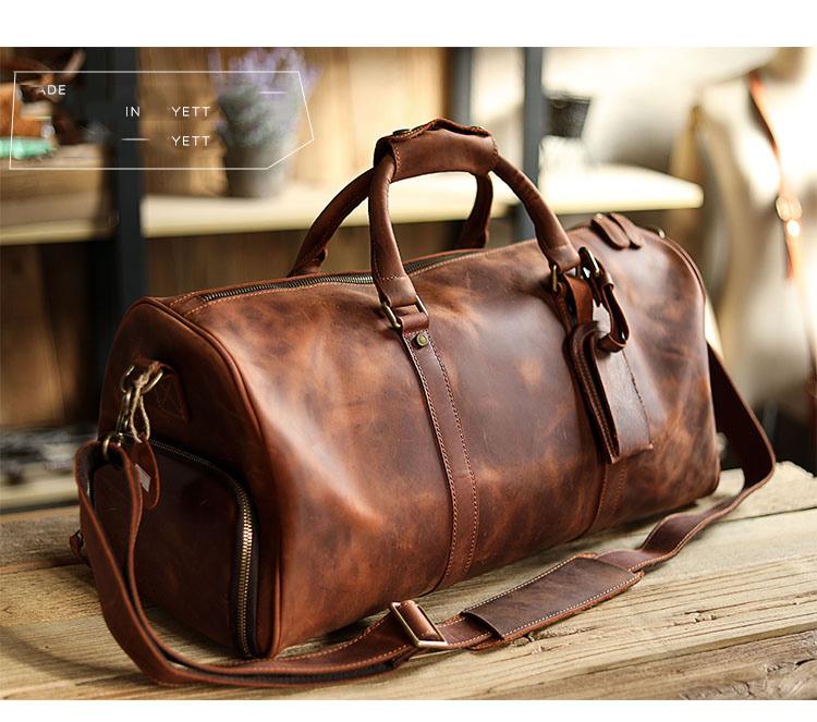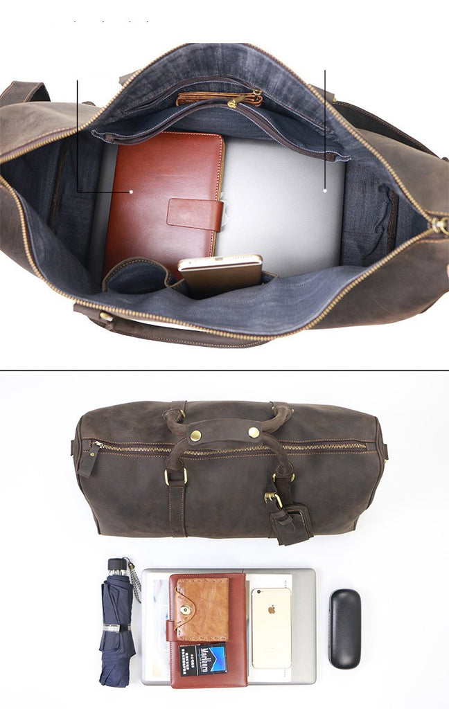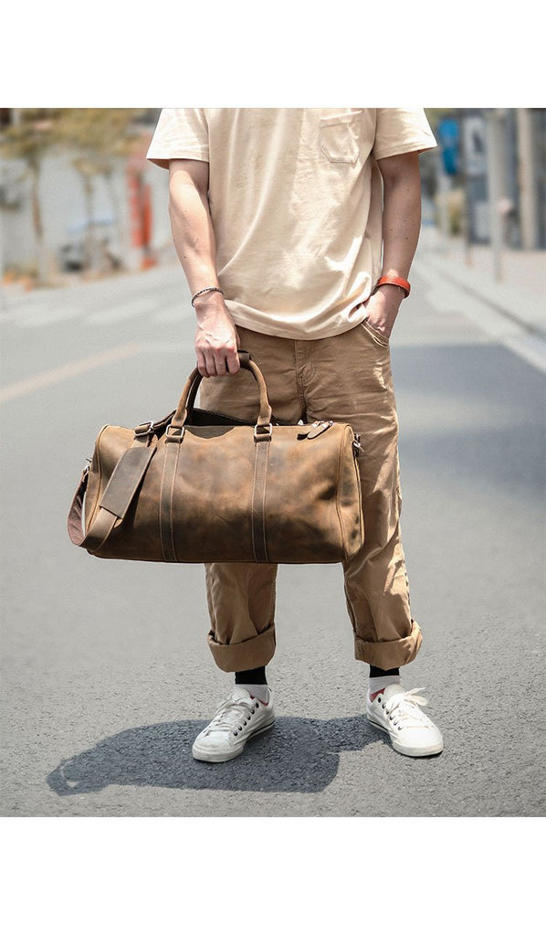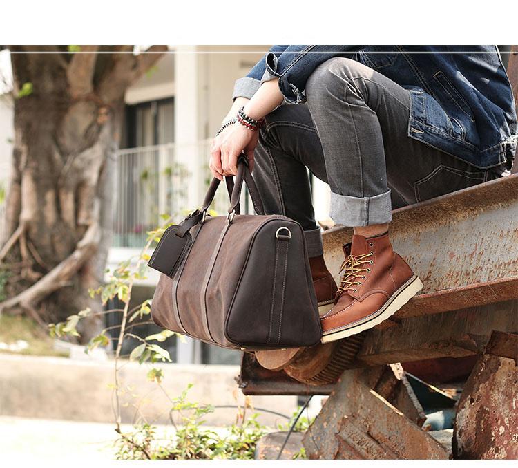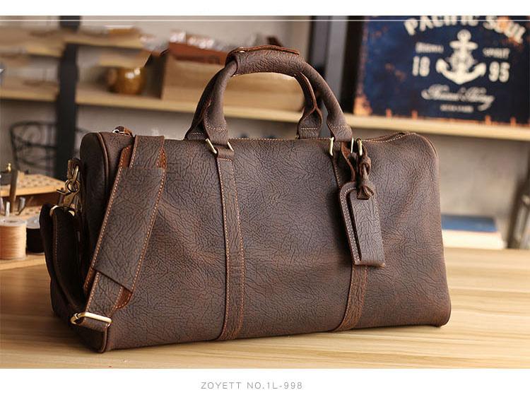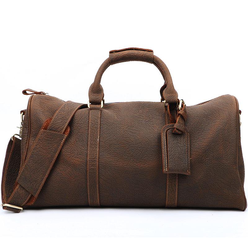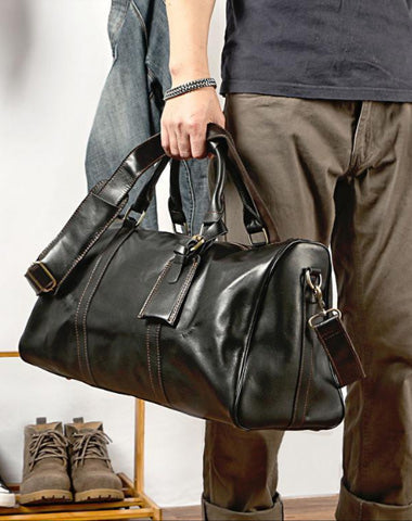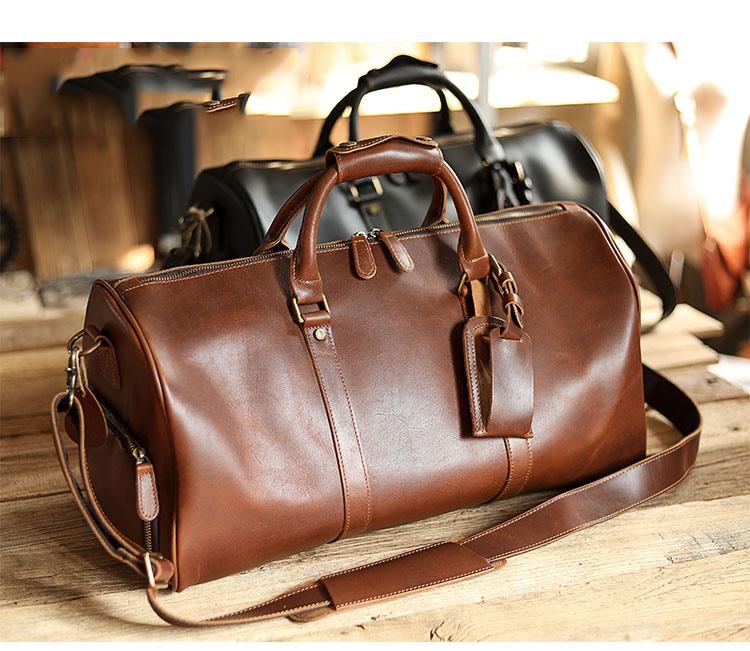 Style: Black Leather Mens Casual Large Travel Bags Shoulder Weekender Bags Dark Gray Duffle Bag For Men