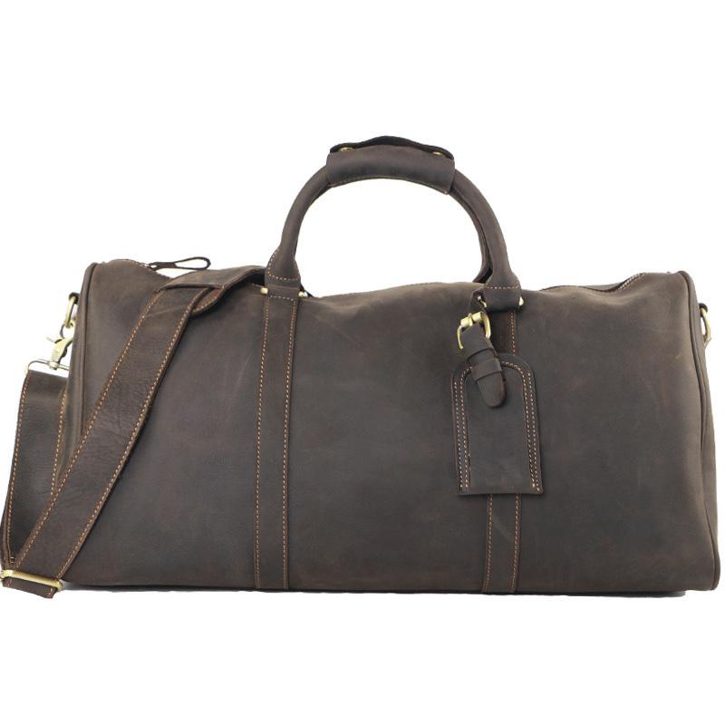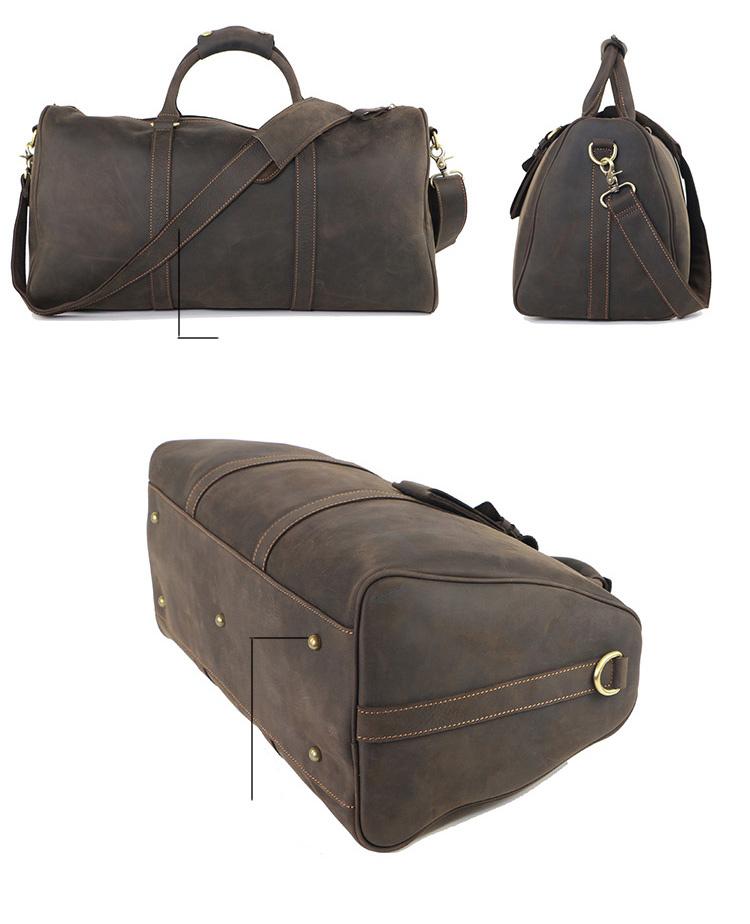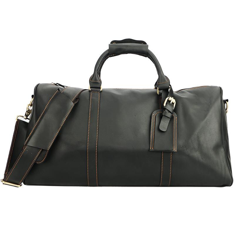 Design: Black Leather Mens Casual Large Travel Bags Shoulder Weekender Bags Dark Gray Duffle Bag For Men