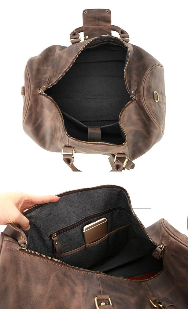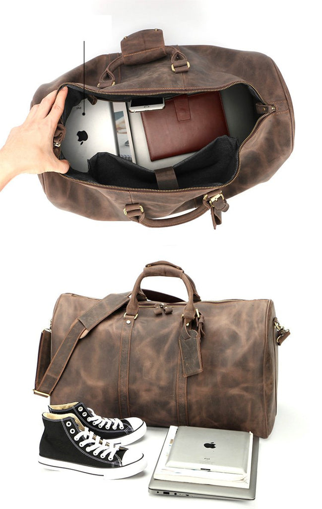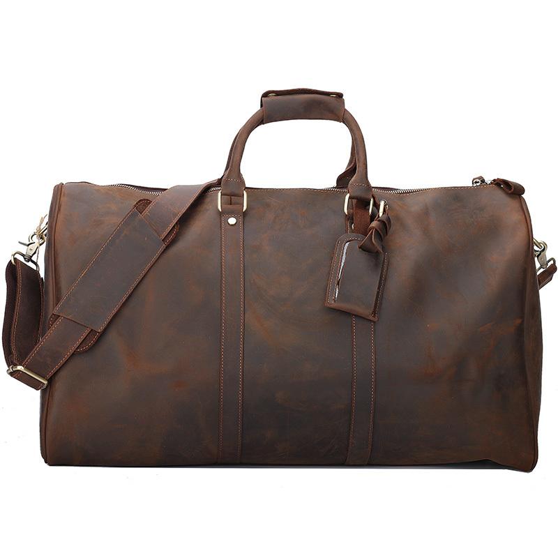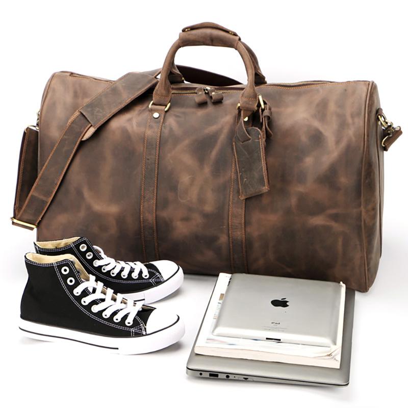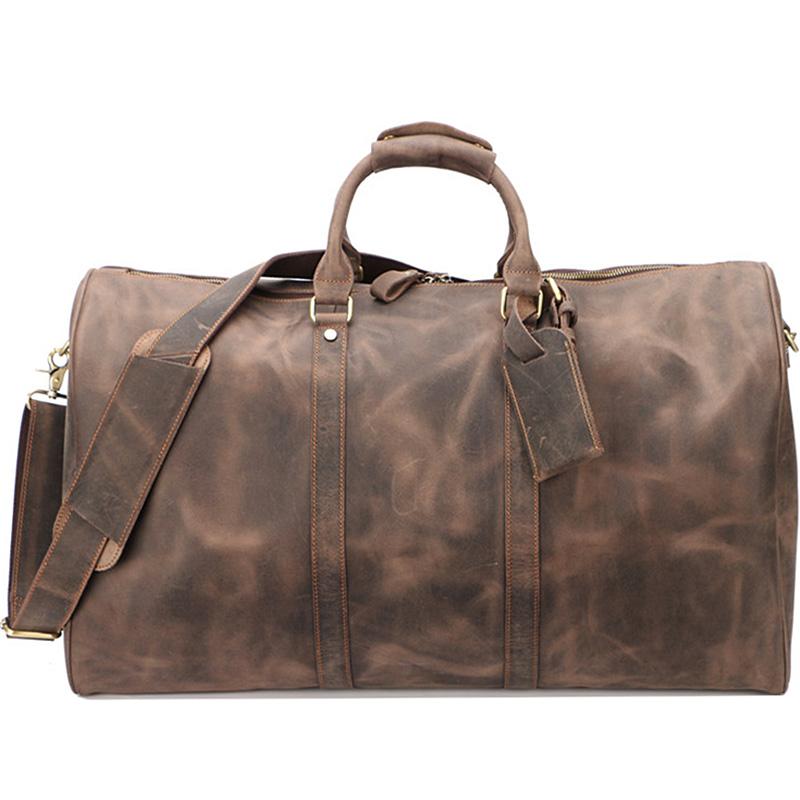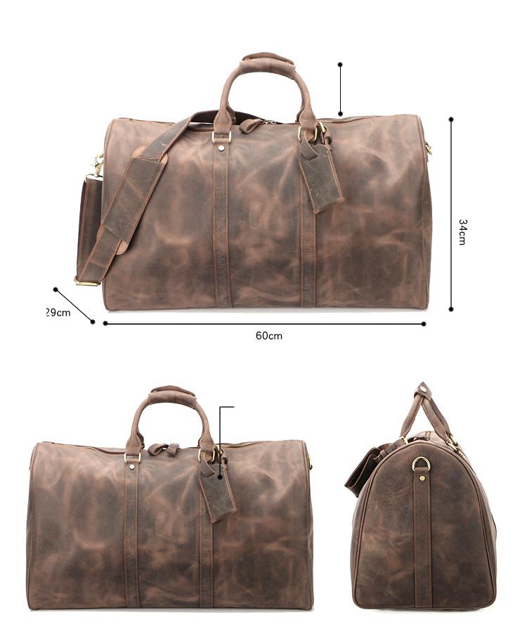 Design: Black Leather Mens Casual Large Travel Bags Shoulder Weekender Bags Duffle Bag For Men