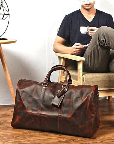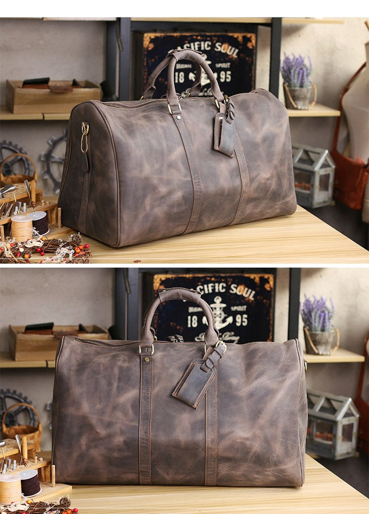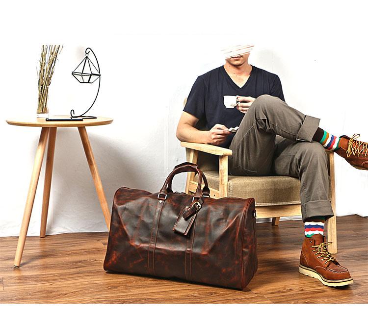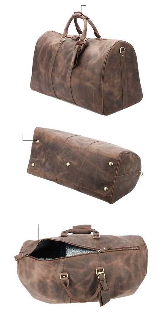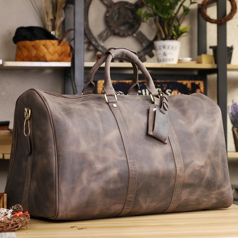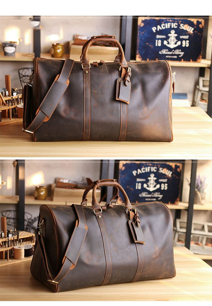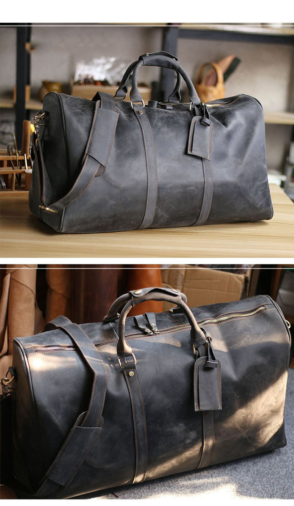 Style: Black Leather Mens Casual Large Travel Bags Shoulder Weekender Bags Duffle Bag For Men