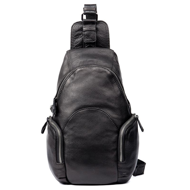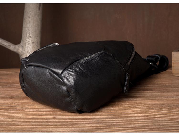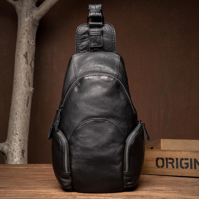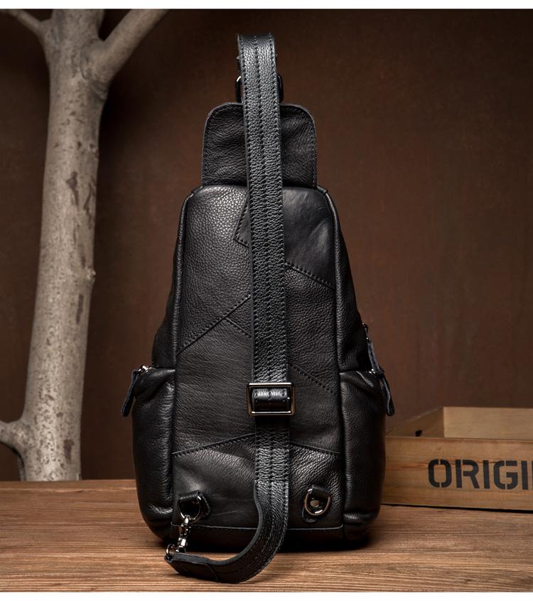 Black Leather Mens Cool Crossbody Pack Sling Bags Black Sling Pack Chest Bag for Men