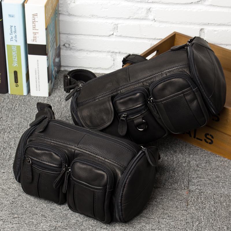 Style: Black Leather Mens Cool 8 inches Sling Pack Black Crossbody Packs Chest Bags for men