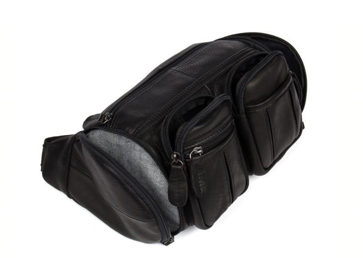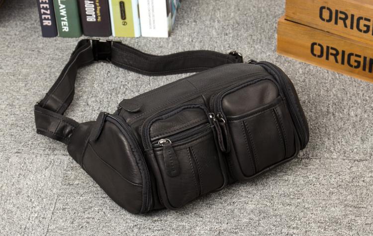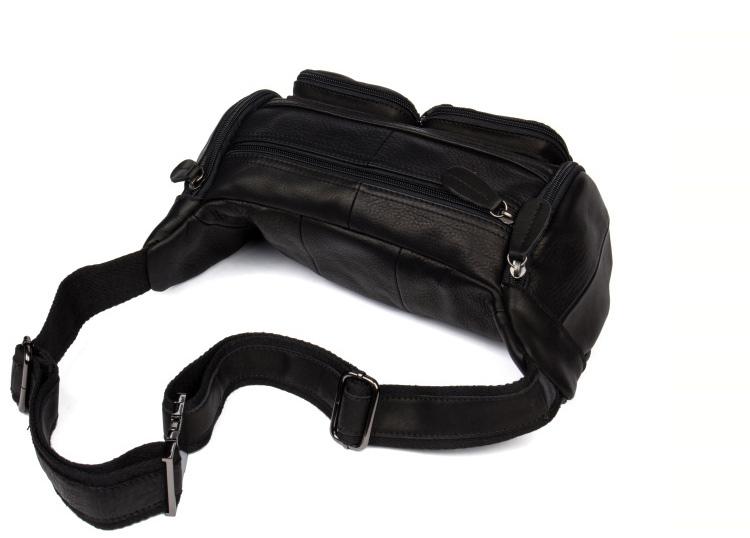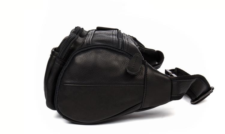 Design: Black Leather Mens Cool 8 inches Sling Pack Black Crossbody Packs Chest Bags for men