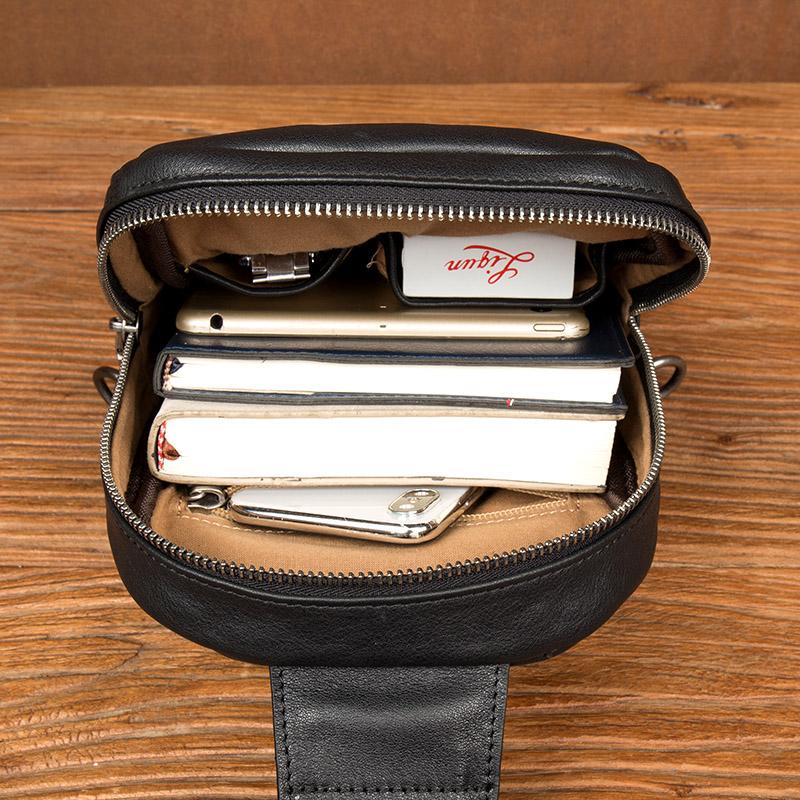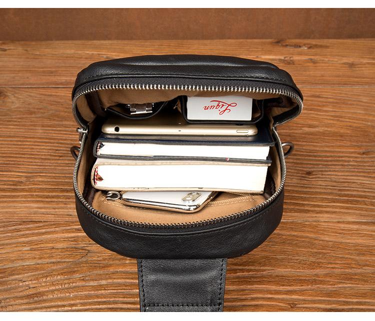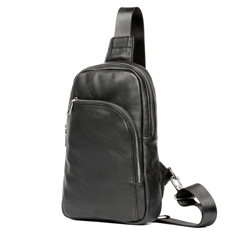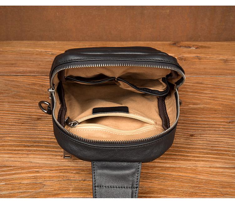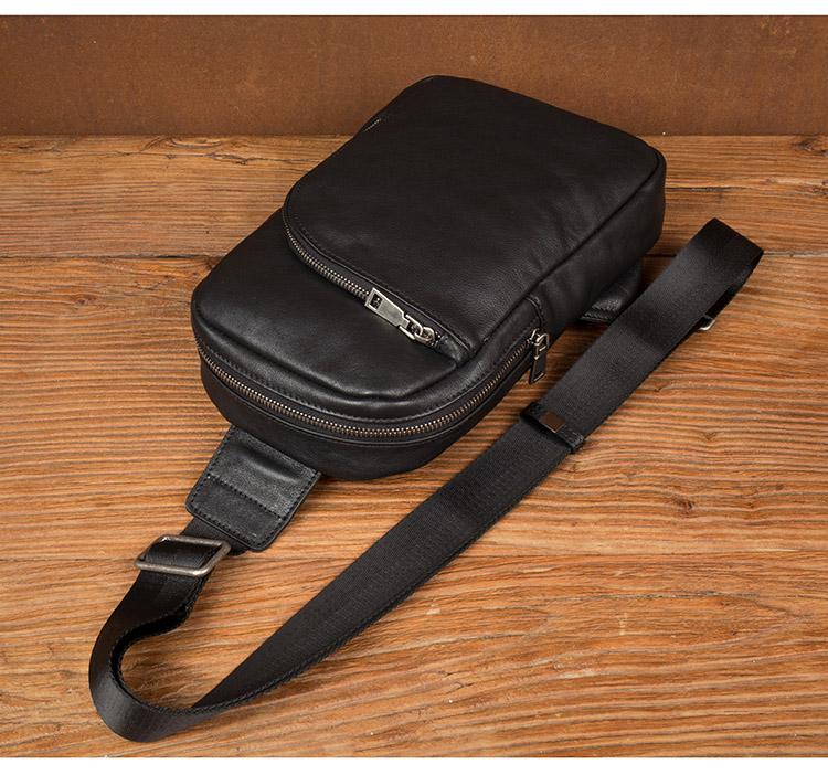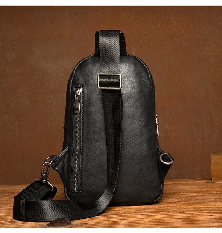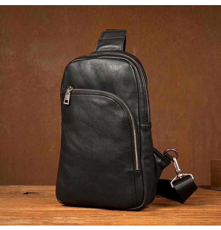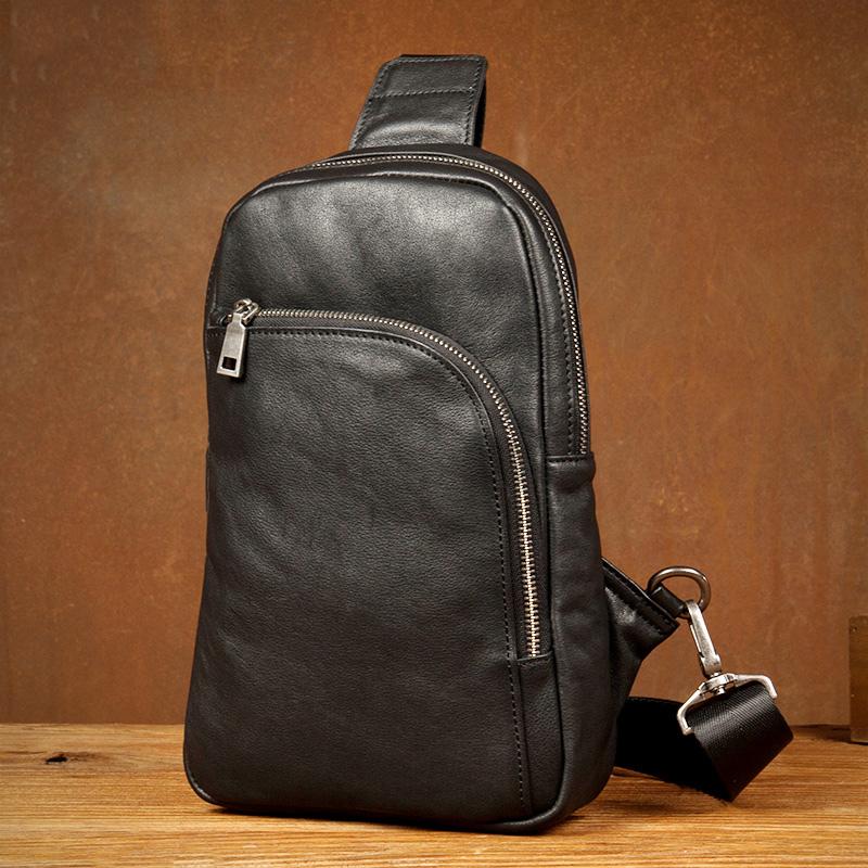 Design: Black Leather Mens Cool Sling Bag Light Brown Crossbody Bag Chest Bag for men