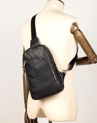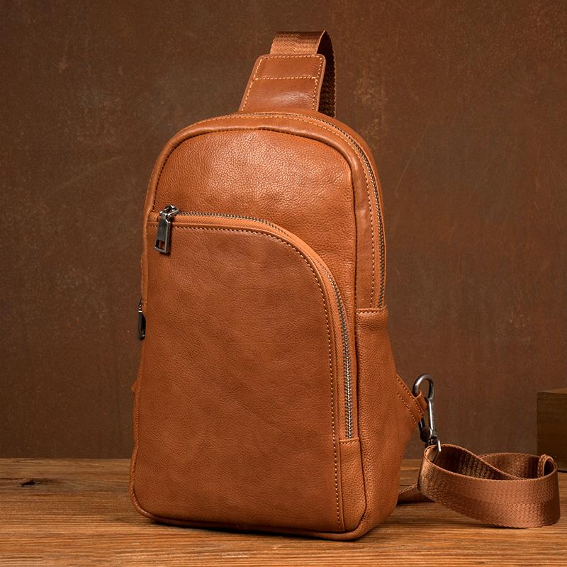Style: Black Leather Mens Cool Sling Bag Light Brown Crossbody Bag Chest Bag for men