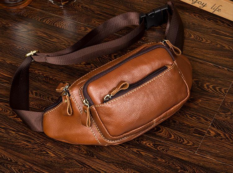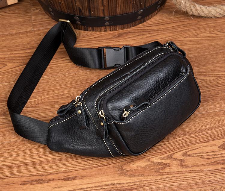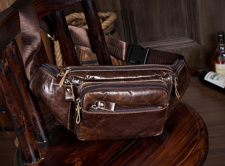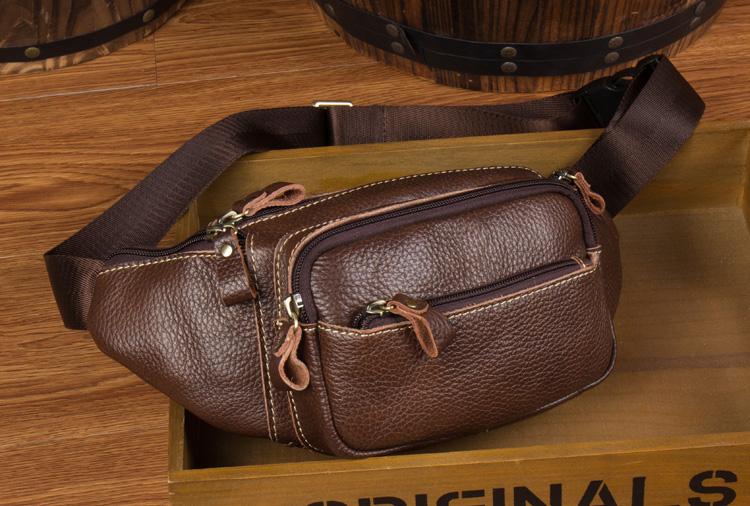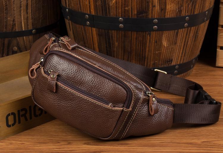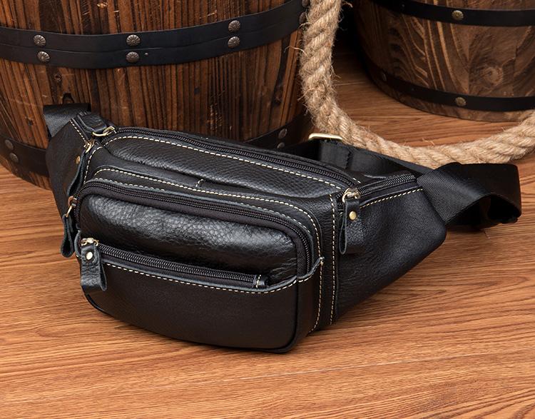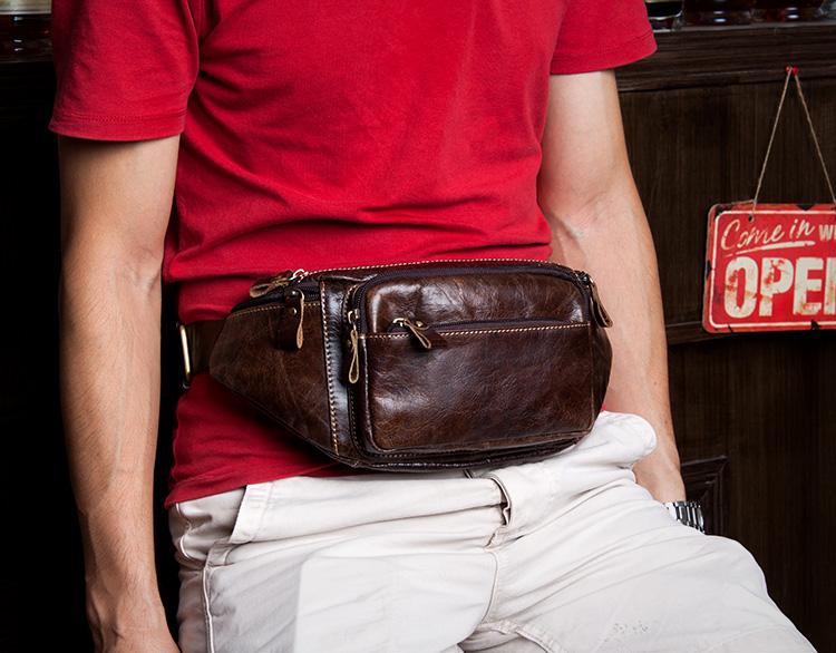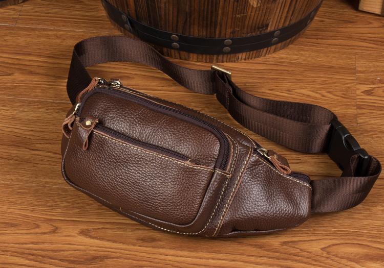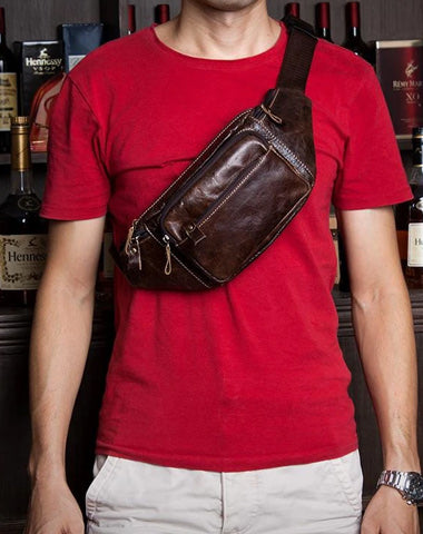 Design: Black Leather Mens Fanny Pack Dark Brown Waist Bag Hip Pack Belt Bag Bumbag for Men