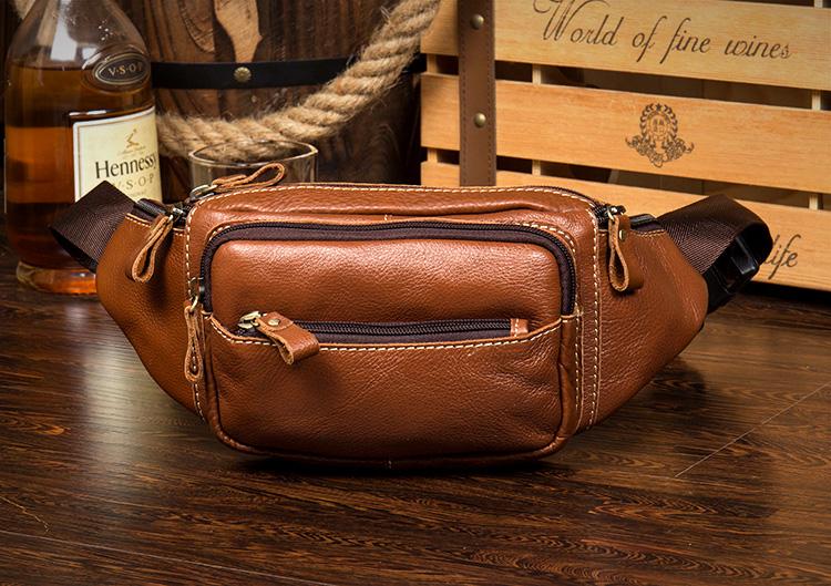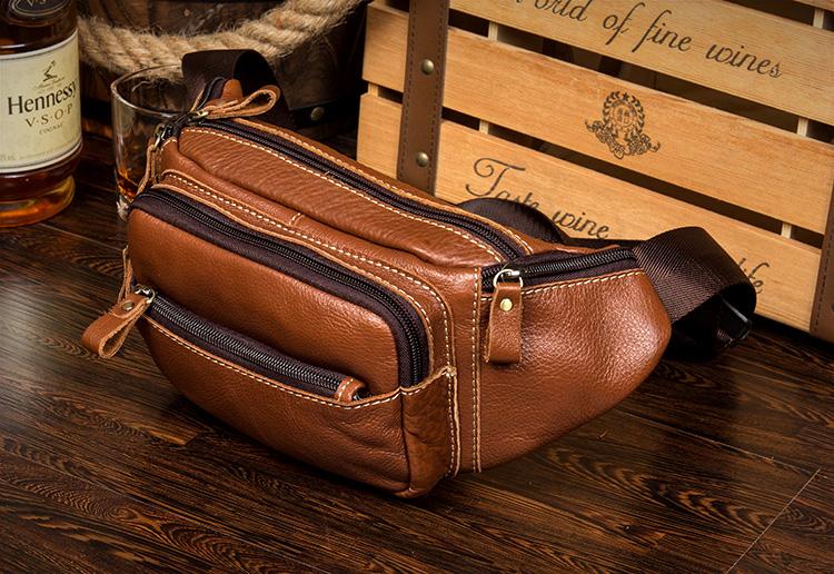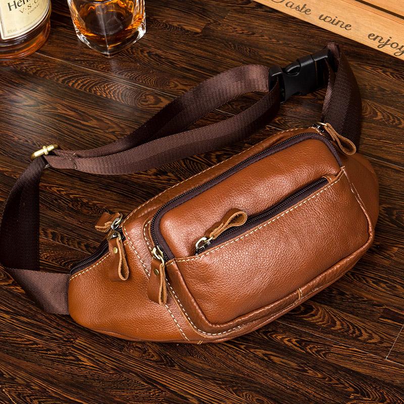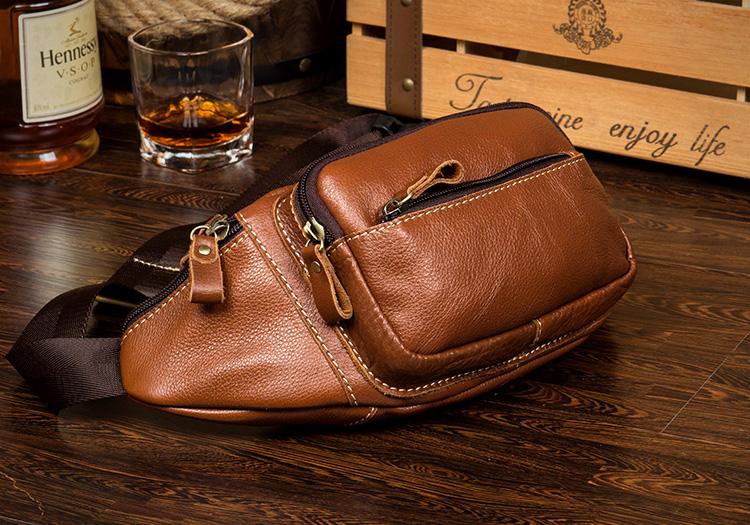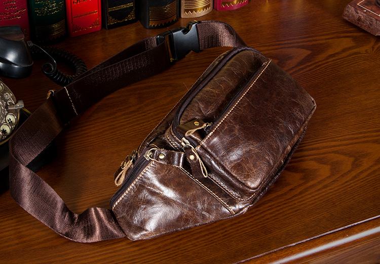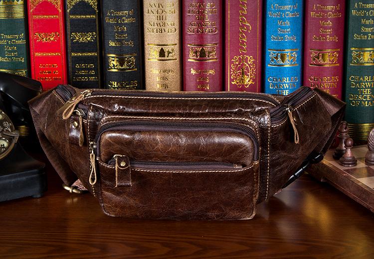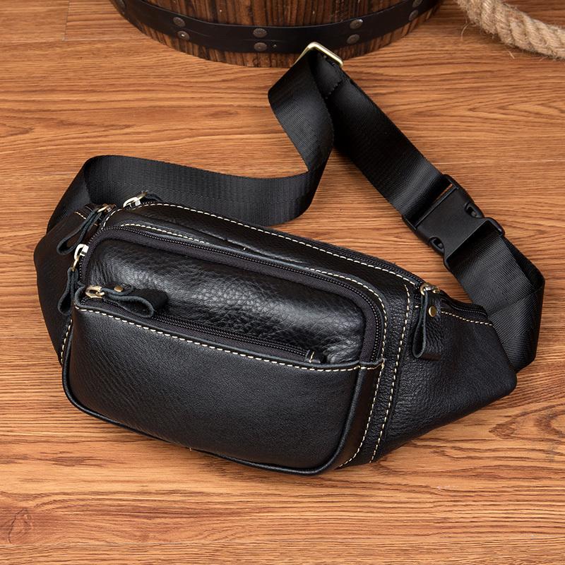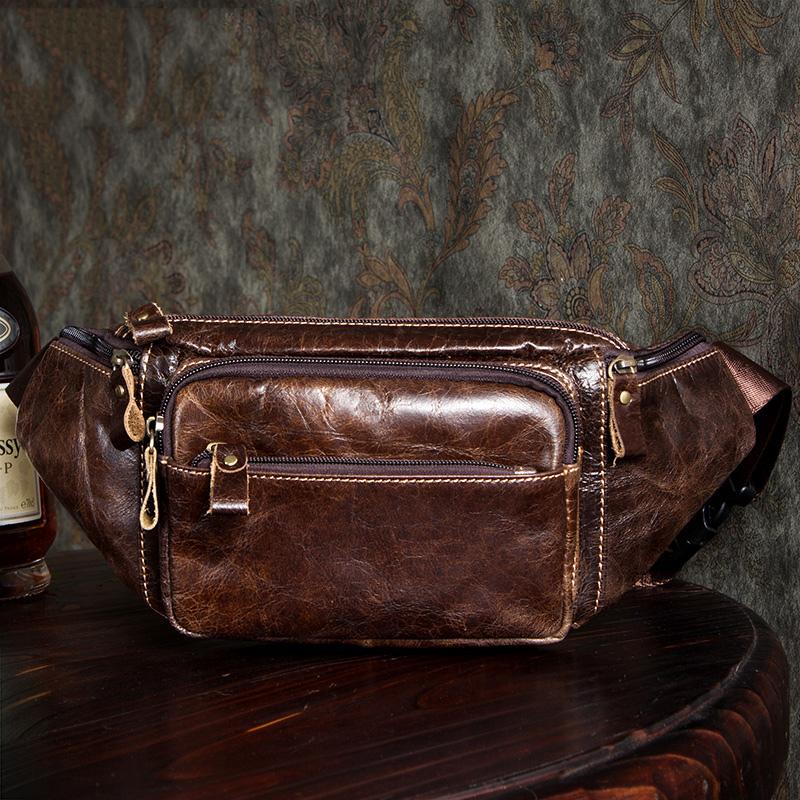 Design: Black Leather Mens Fanny Pack Dark Brown Waist Bag Hip Pack Belt Bag Bumbag for Men