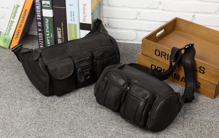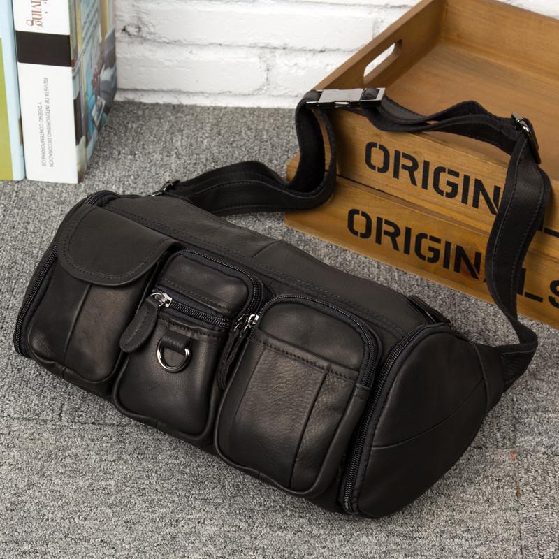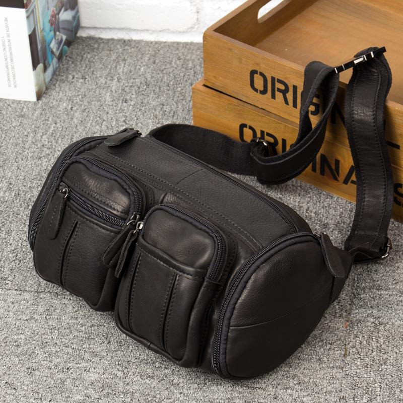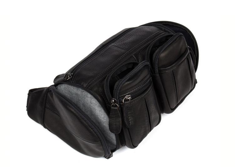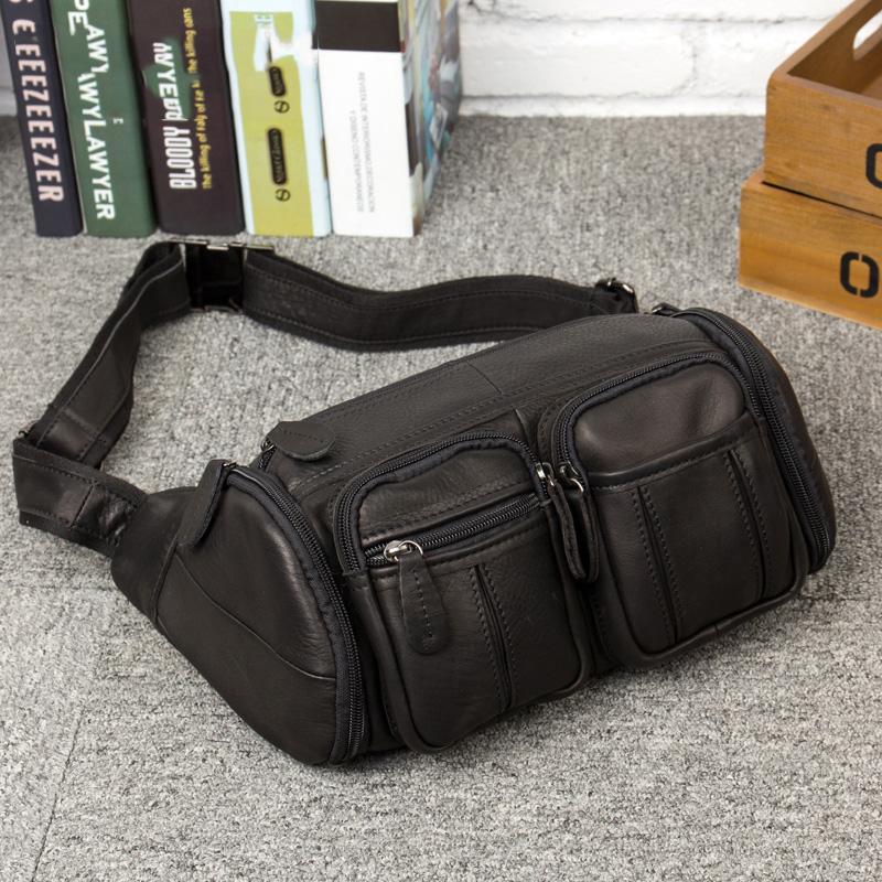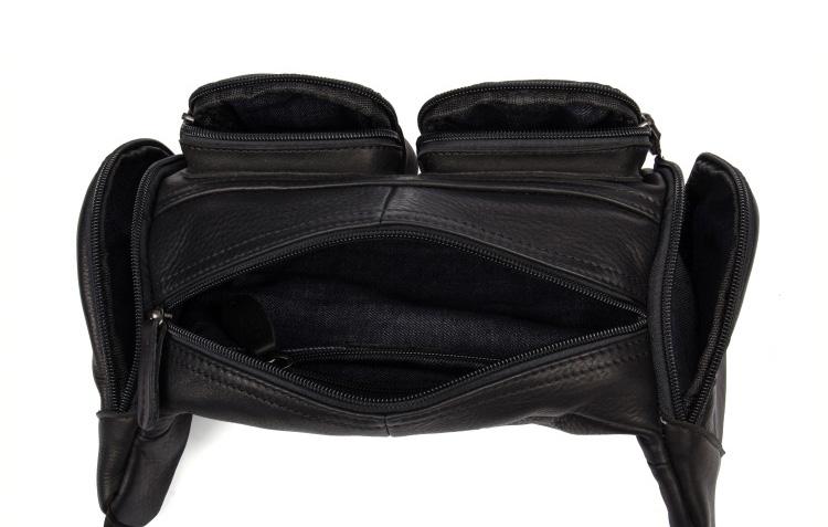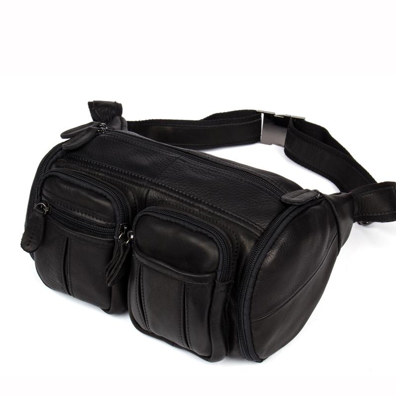 Design:Black Leather Mens Fanny Pack Waist Bag Hip Pack Belt Bag Bumbag for Men