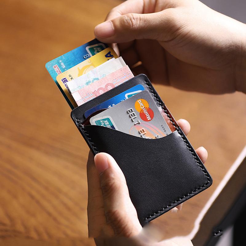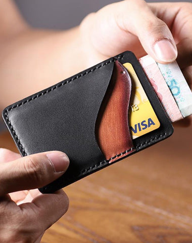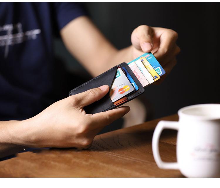 Design: Black Leather Mens Front Pocket Wallet Personalized Slim Card Wallets for Men