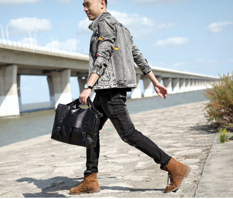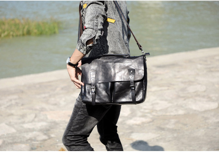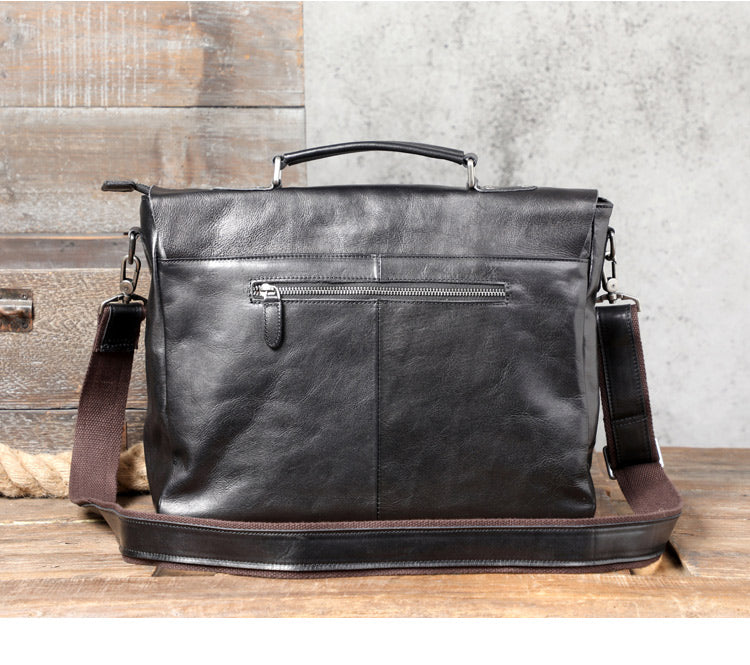 Design: Black Leather Mens Large Briefcase 14inches Laptop Work Bag Laptop Bag Business Bag for Men