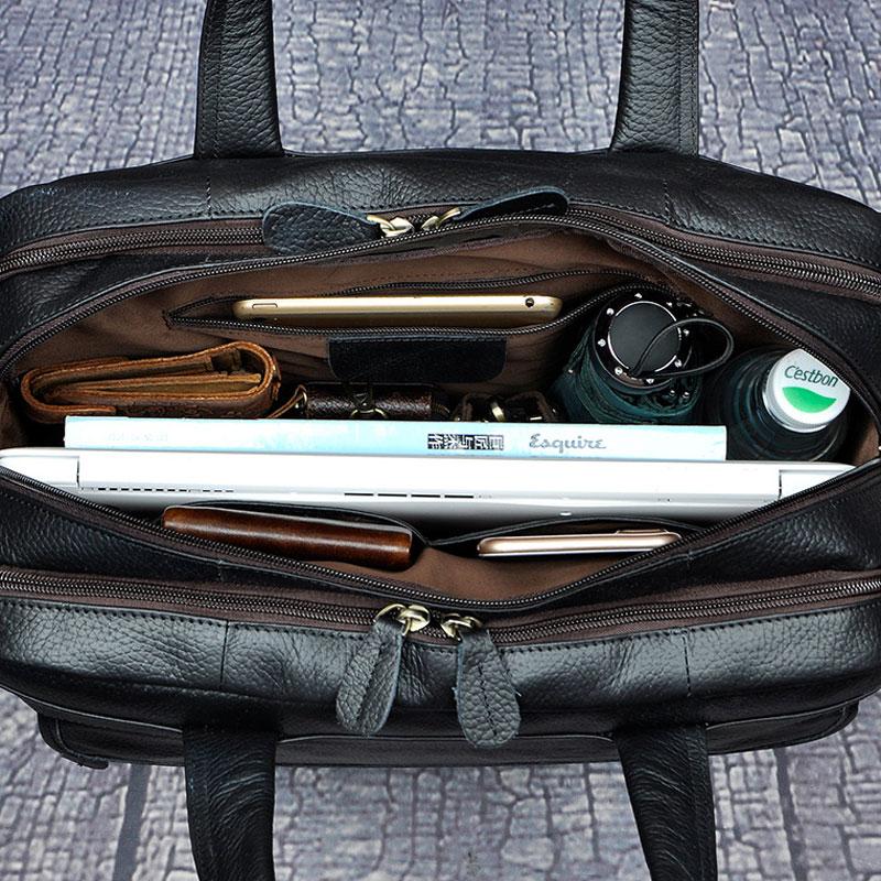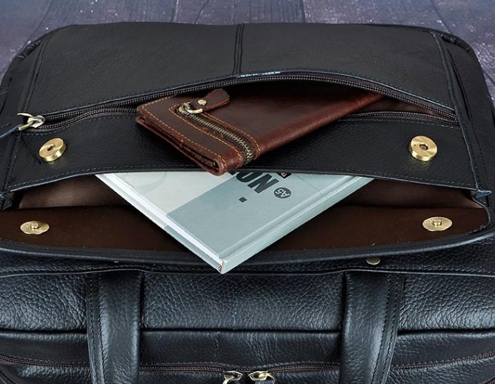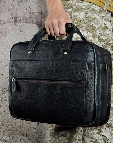 Design: Black Leather Mens Large Briefcase Travel Bag Business Bag Work Bag for Men