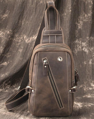 Style: Black LEATHER MENS Sling Bags Sling Pack 8 inches One Shoulder Backpack Blue Chest Bag For Men