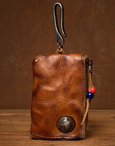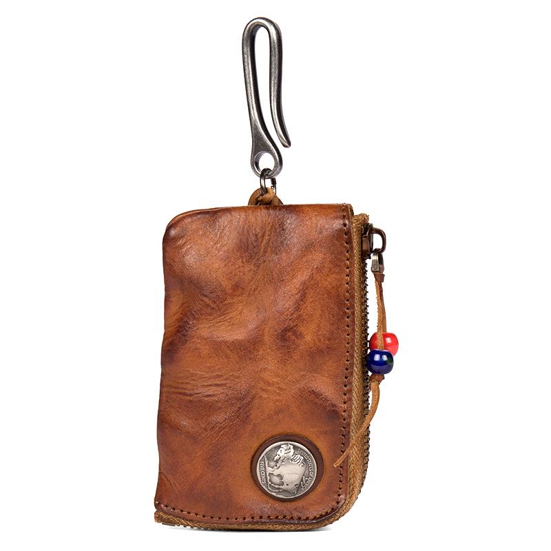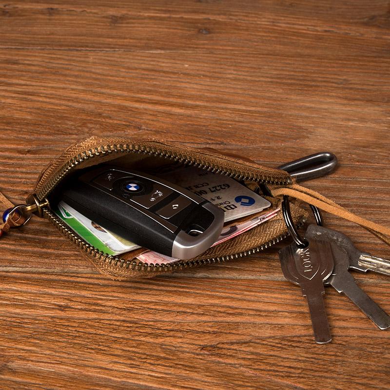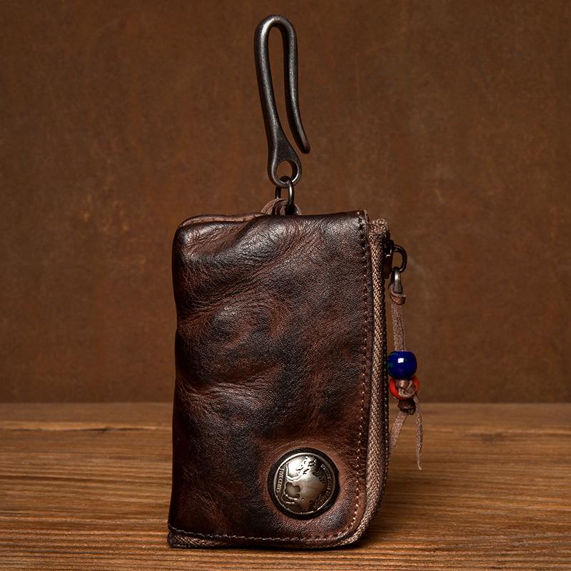 Design: Black Leather Mens Small Car Key Wallet Dark Brown Key Holder Coin Purse Brown Card Holder For Men