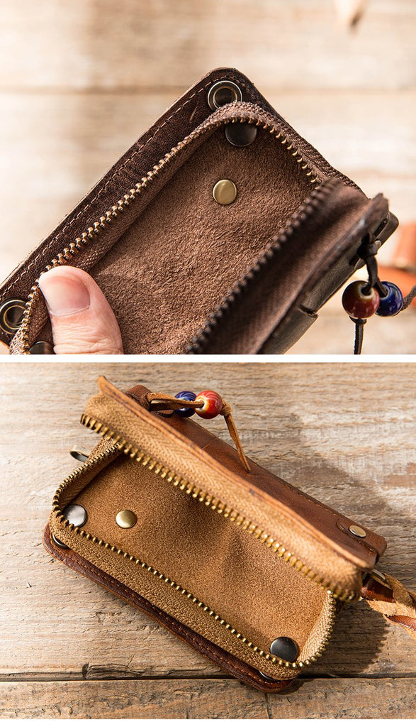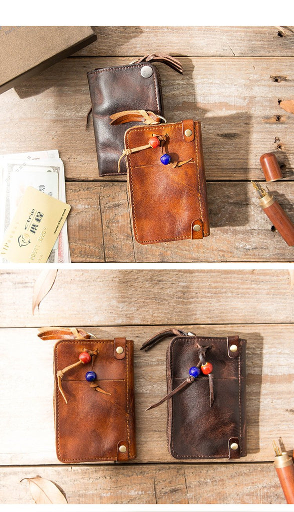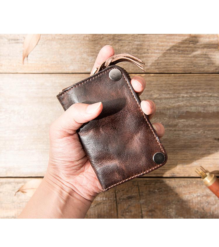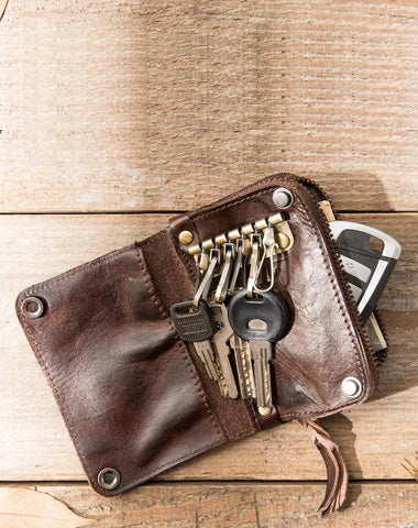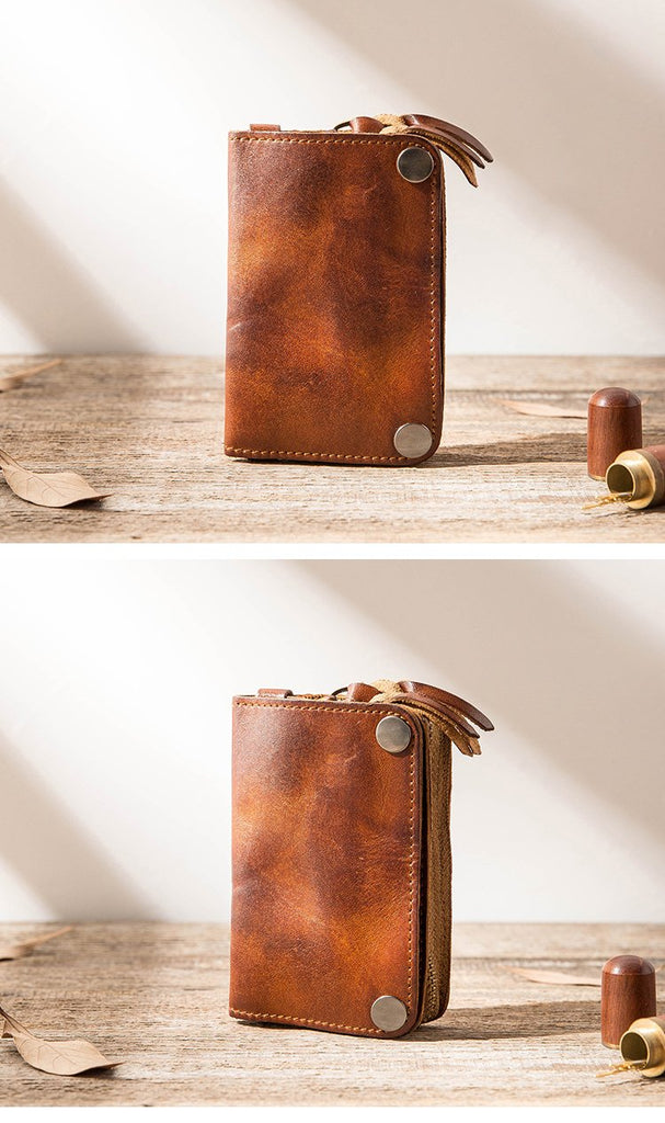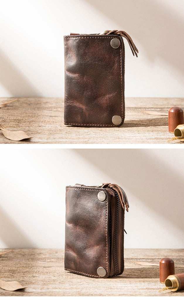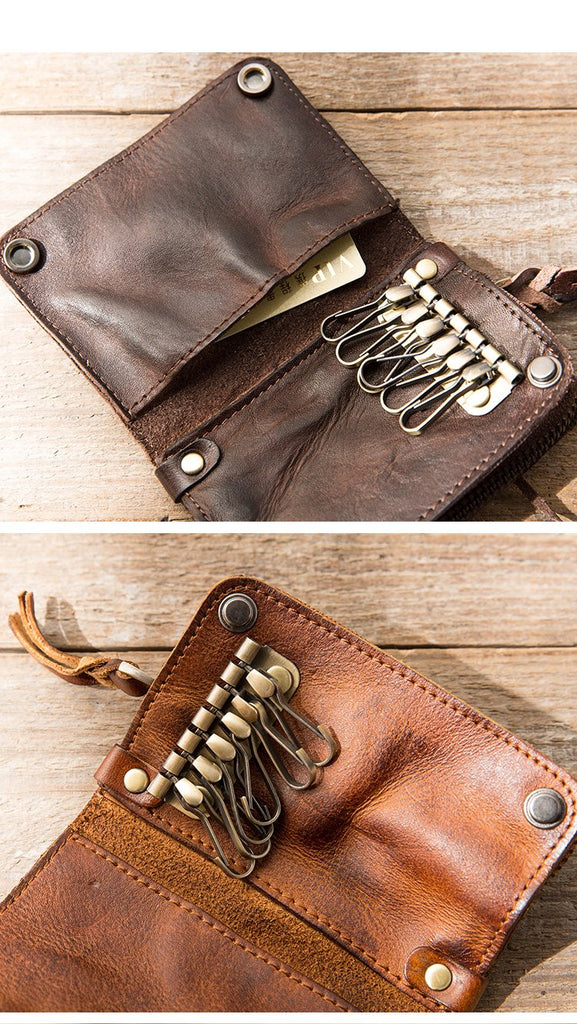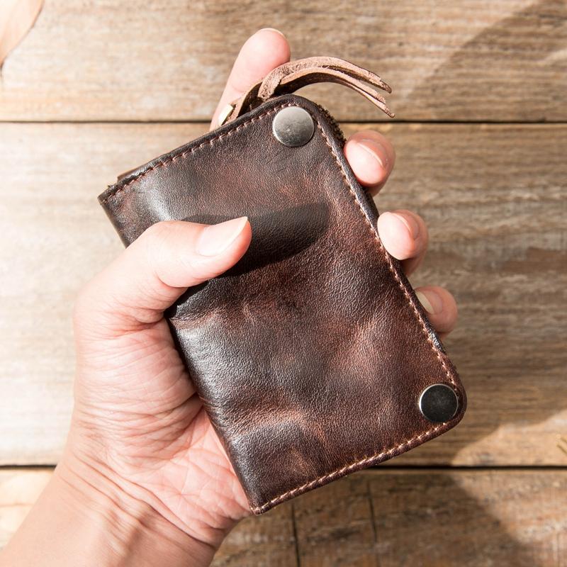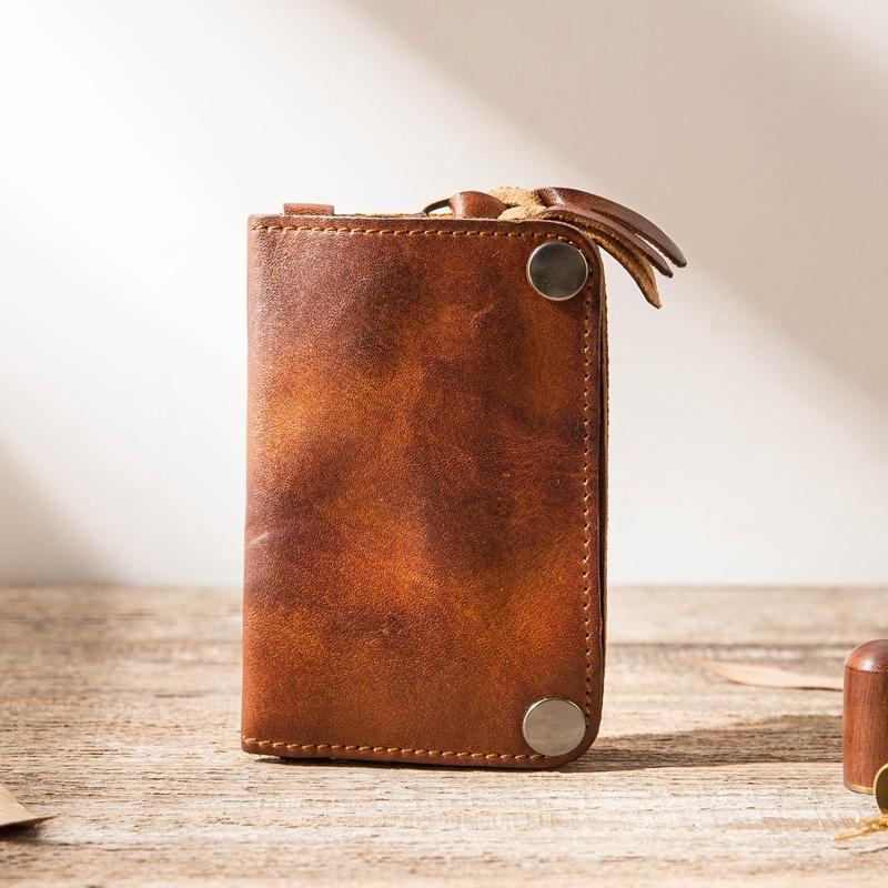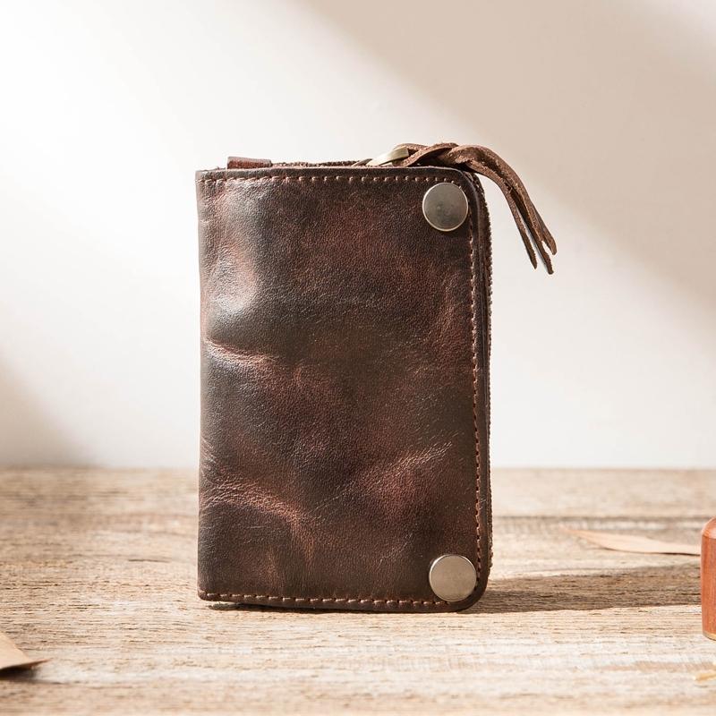Style: Black Leather Mens Small Car Key Wallet Dark Brown Key Holder Coin Purse Card Holder For Men
