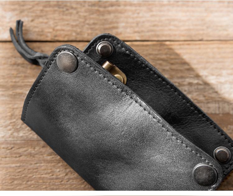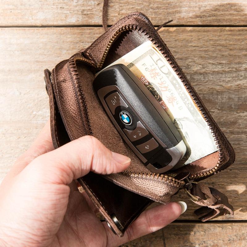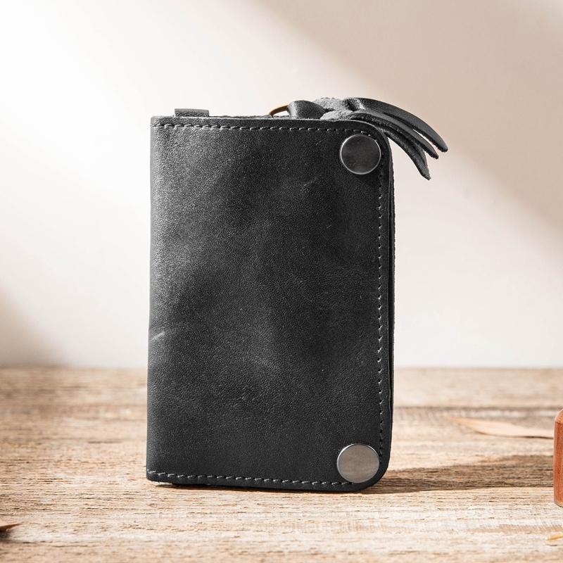 Design: Black Leather Mens Small Car Key Wallet Dark Brown Key Holder Coin Purse Card Holder For Men