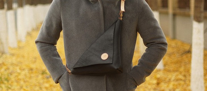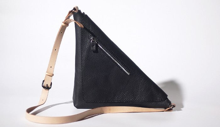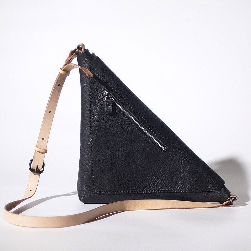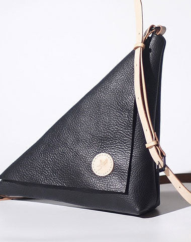 Style: Black Leather Mens Triangle Sling Bag Sling Shoulder Bag Chest Bag for men