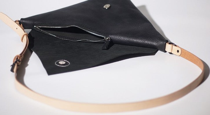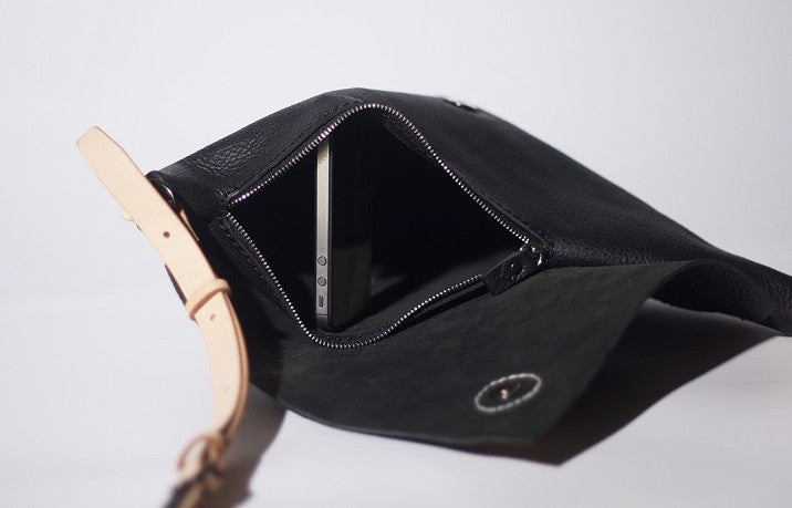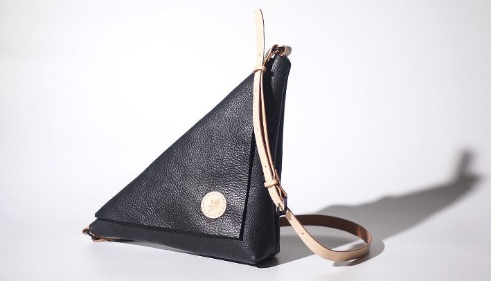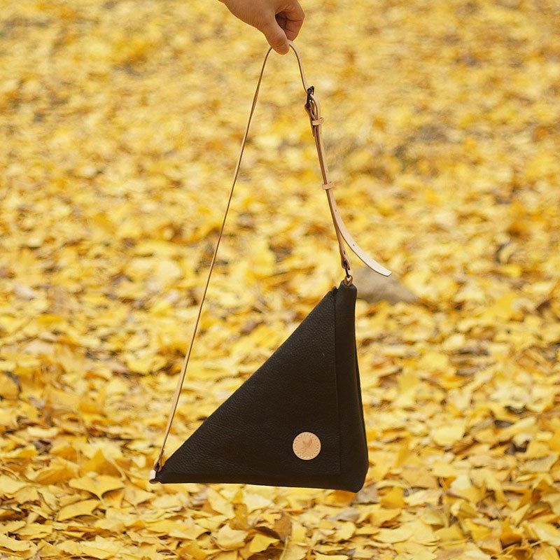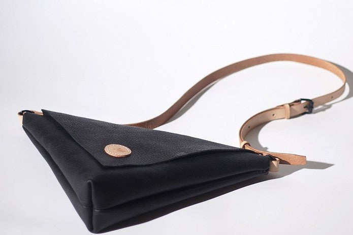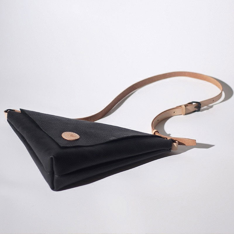 Design: Black Leather Mens Triangle Sling Bag Sling Shoulder Bag Chest Bag for men