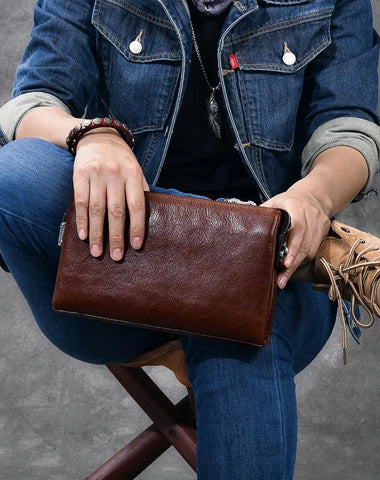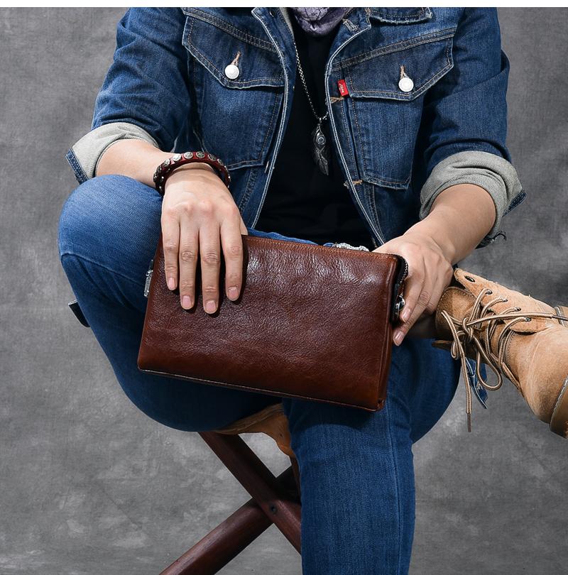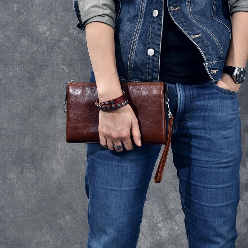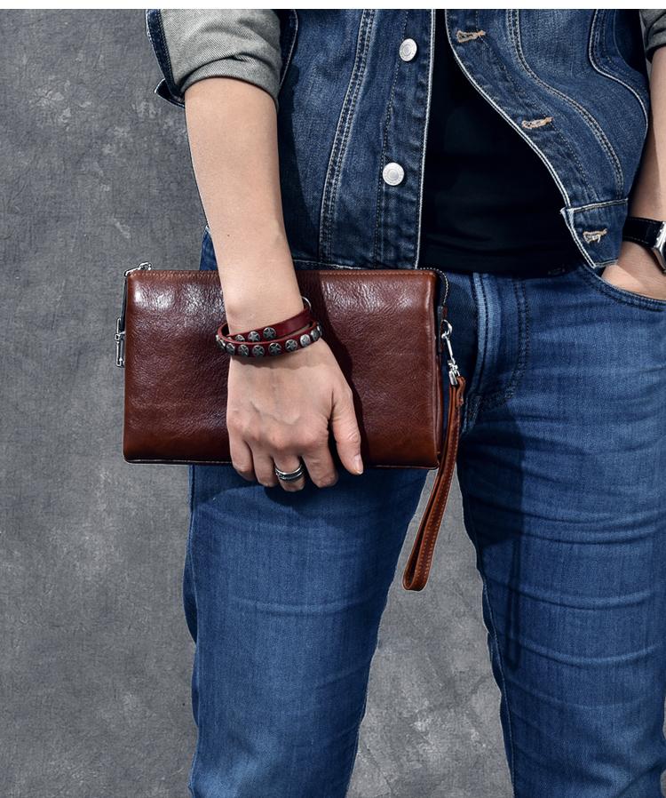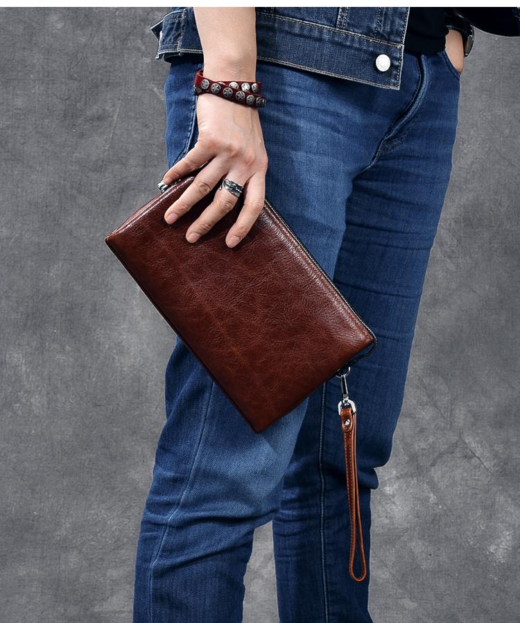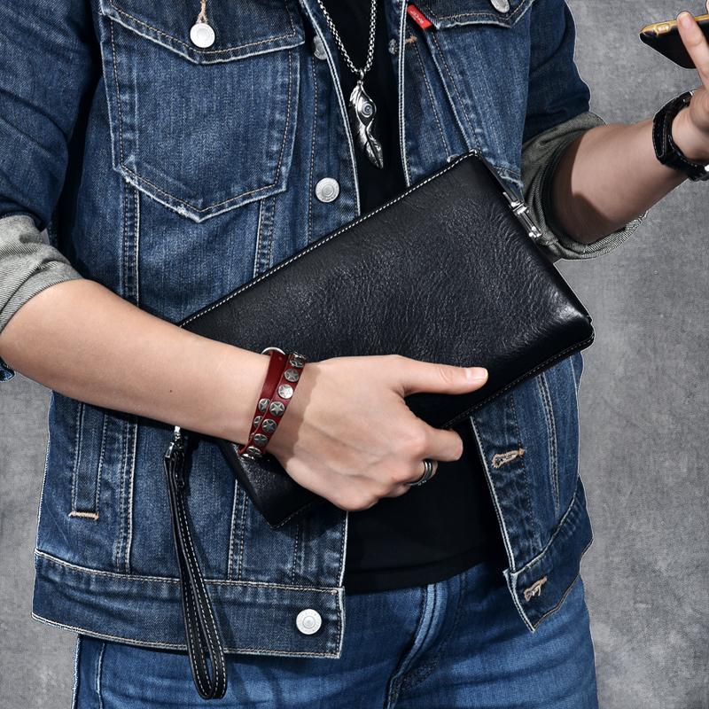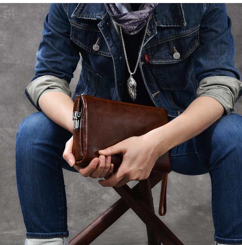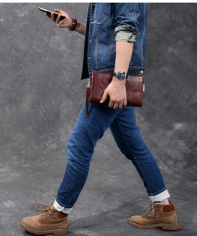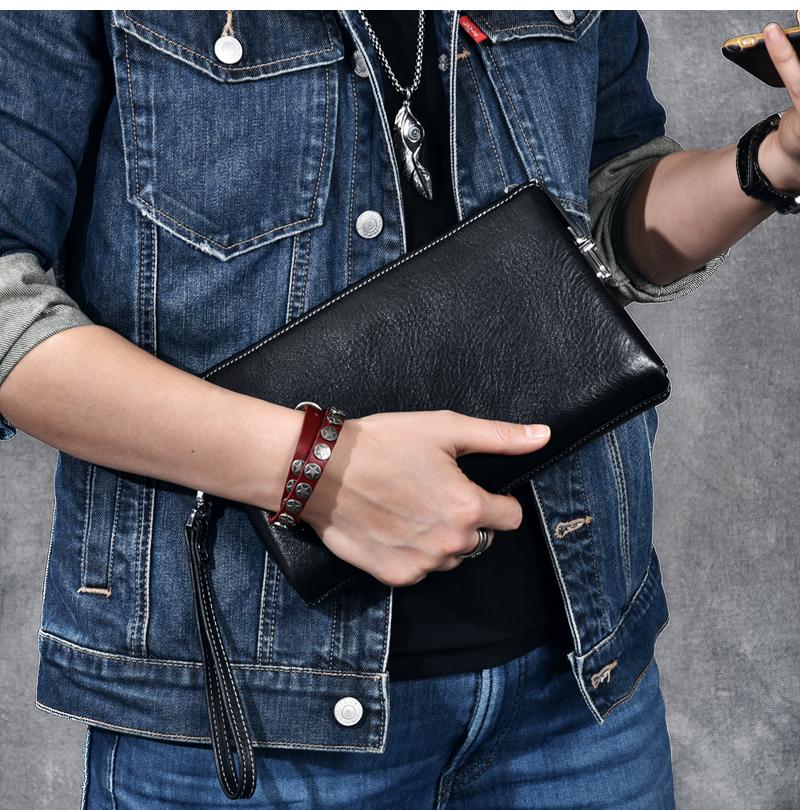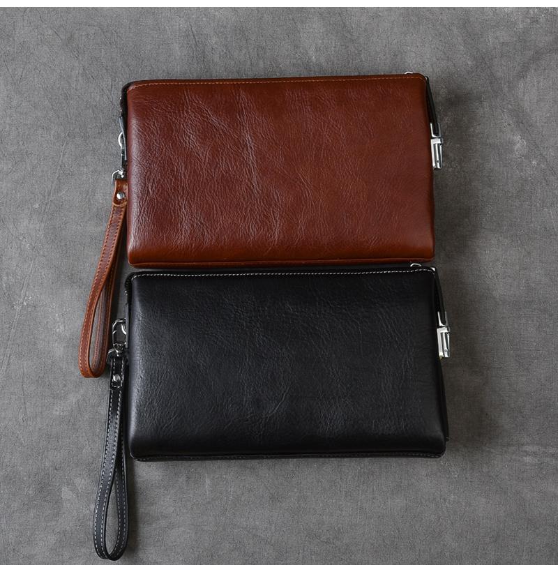 Style: Black Leather Mens Women's Brown Business Clutch Bag Long Wallet For Men