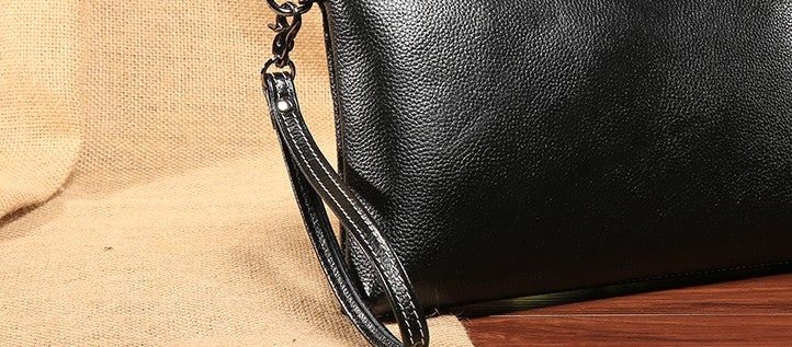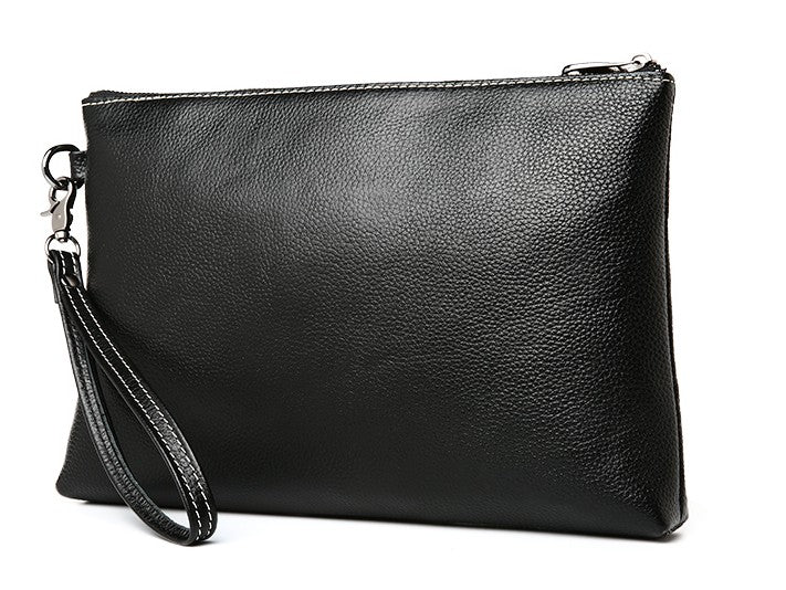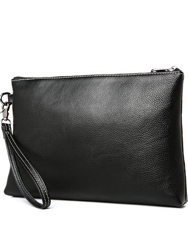 Style: Black Leather Mens Wristlet Wallet Bag Zipper Clutch Wallet For Men