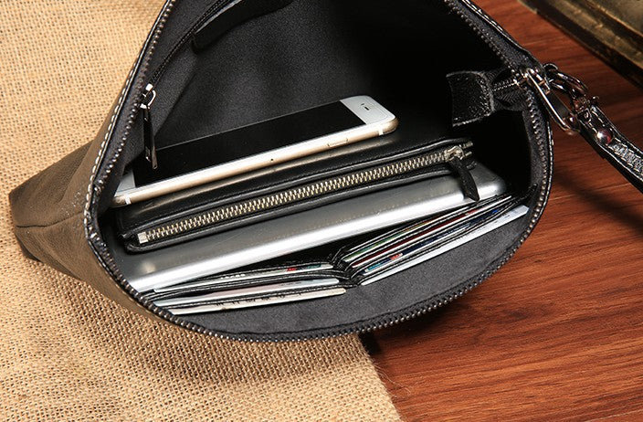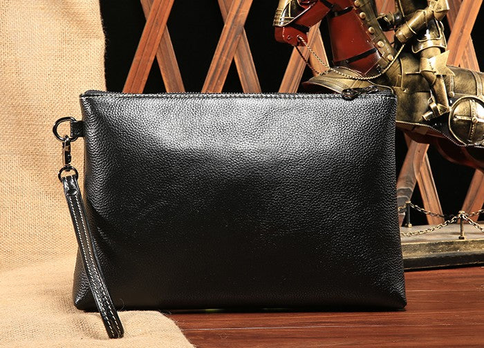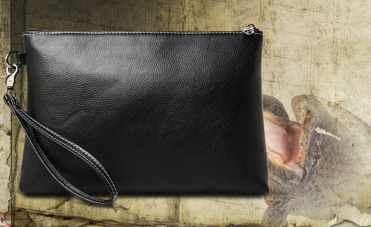 Design: Black Leather Mens Wristlet Wallet Bag Zipper Clutch Wallet For Men