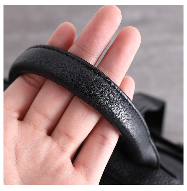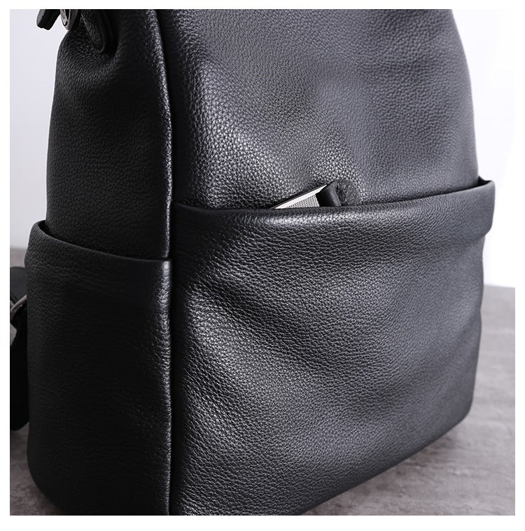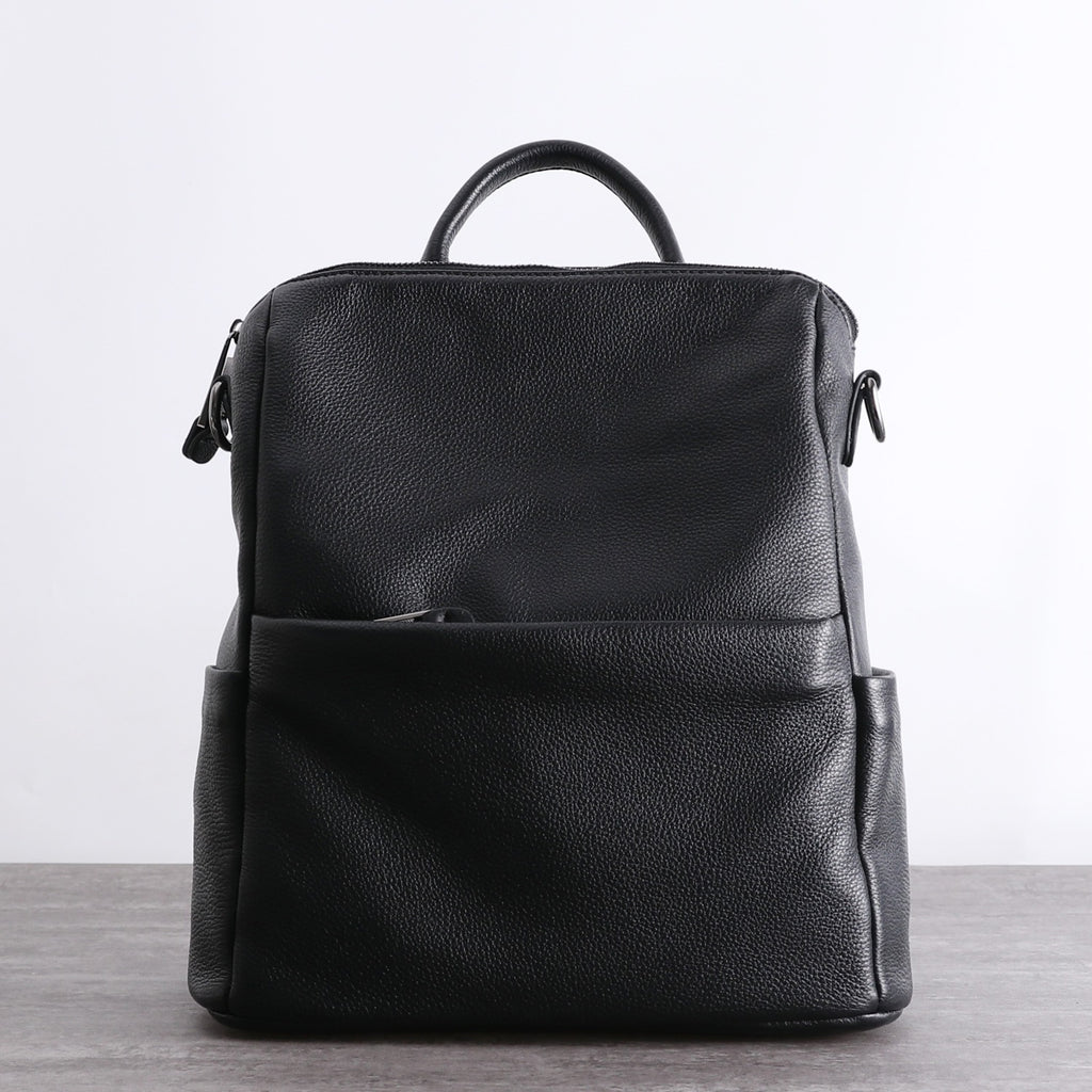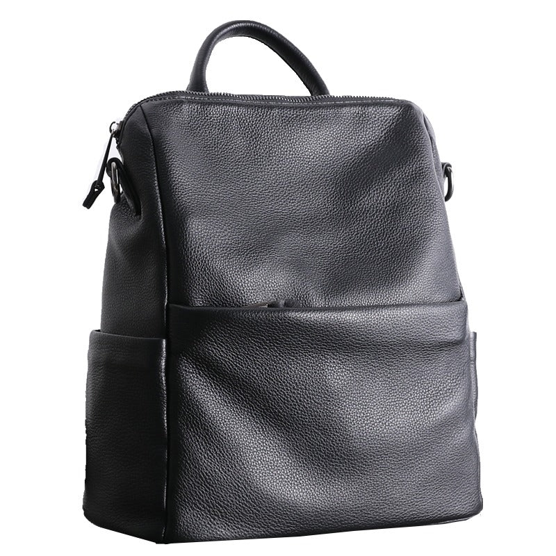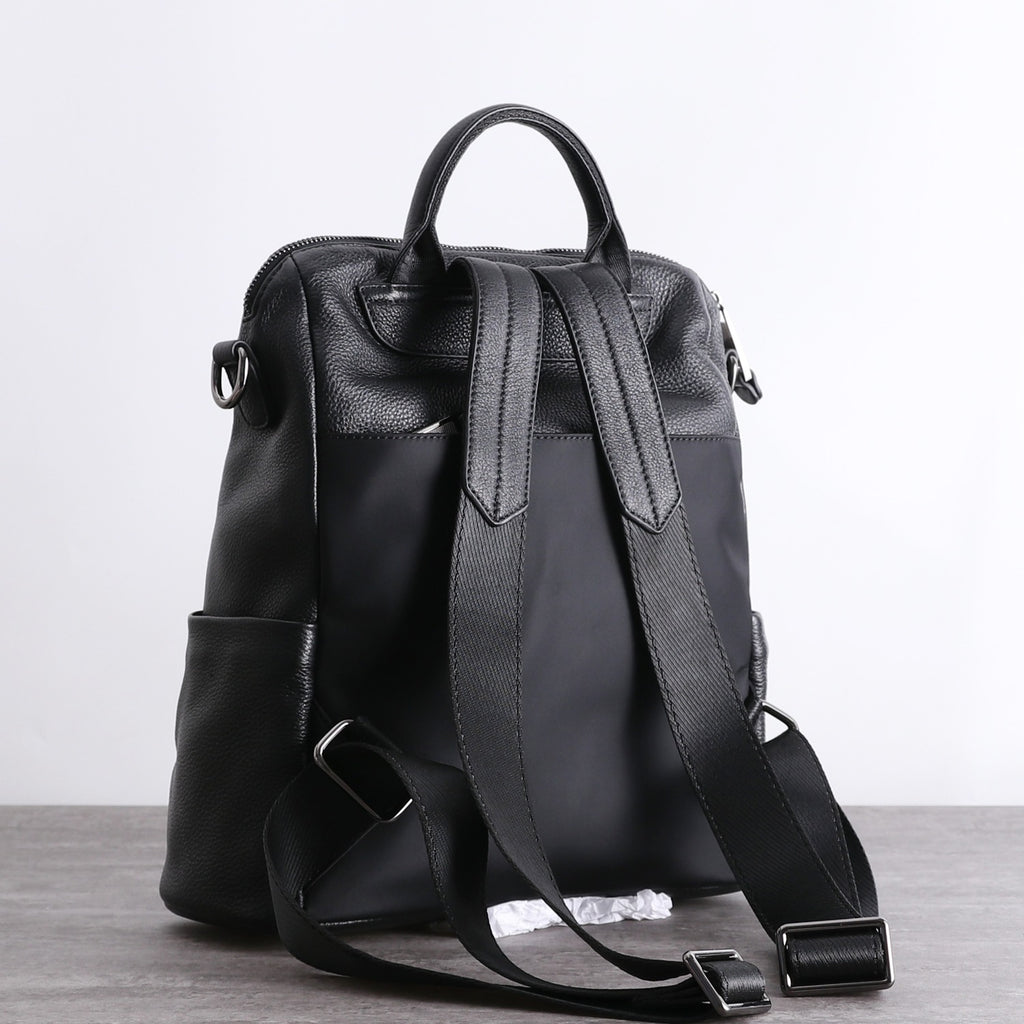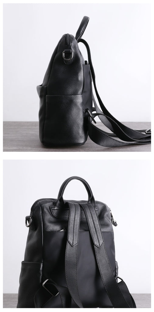 Design: Black Leather School Backpack Womens Cute College Backpack Purse Black Leather Travel Rucksack for Ladies