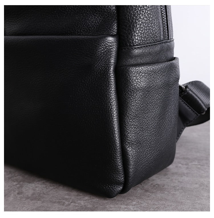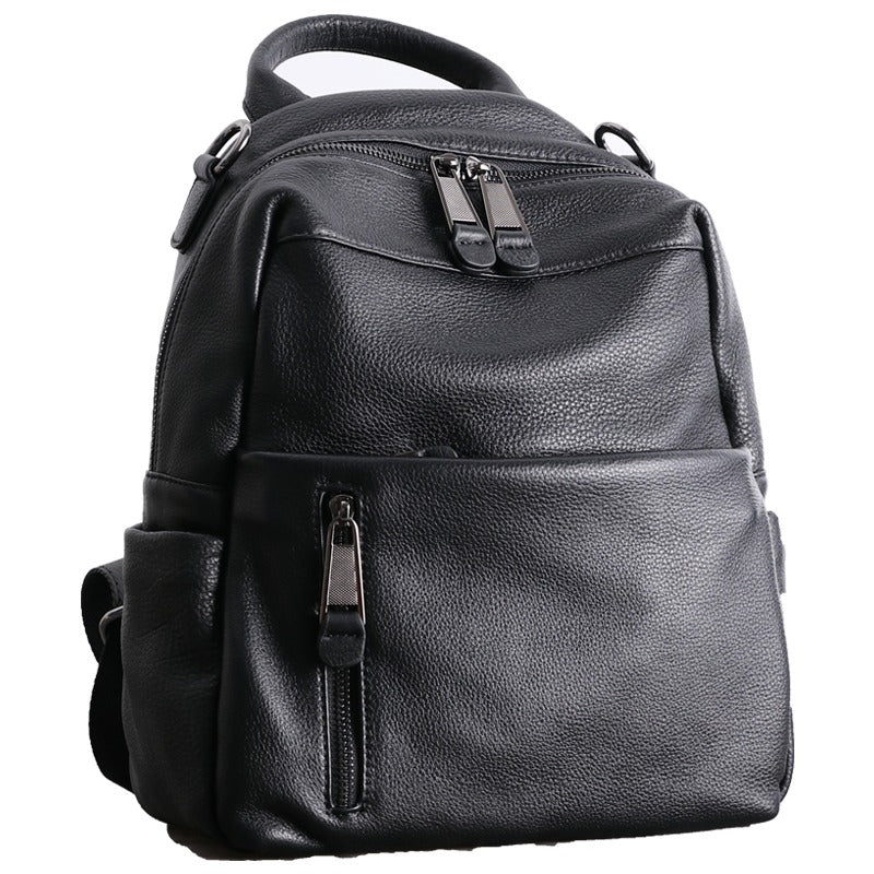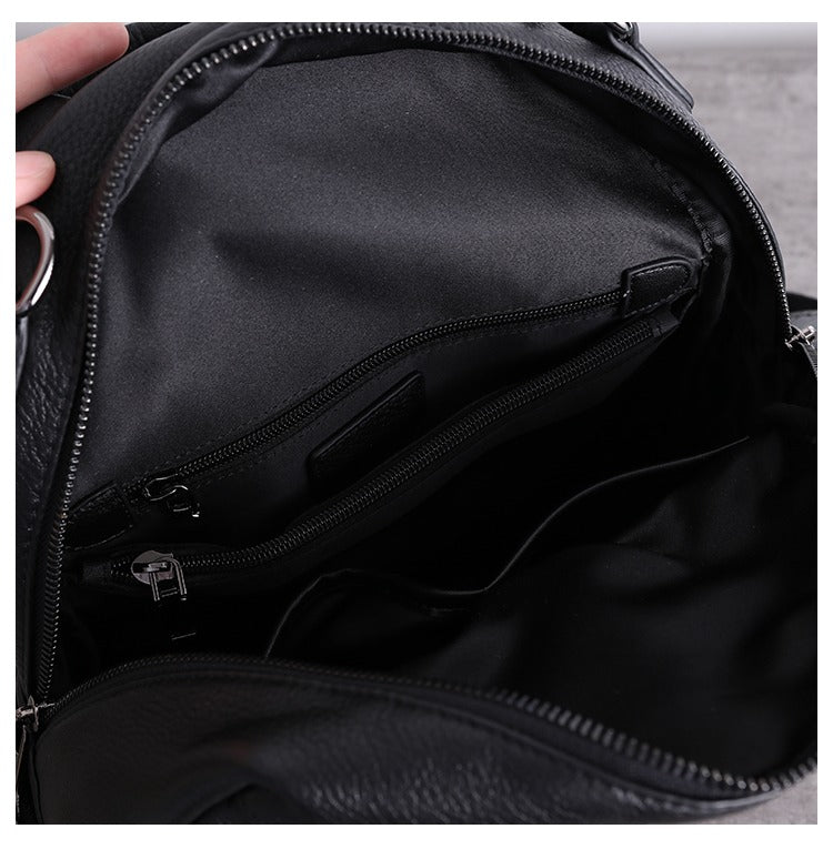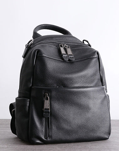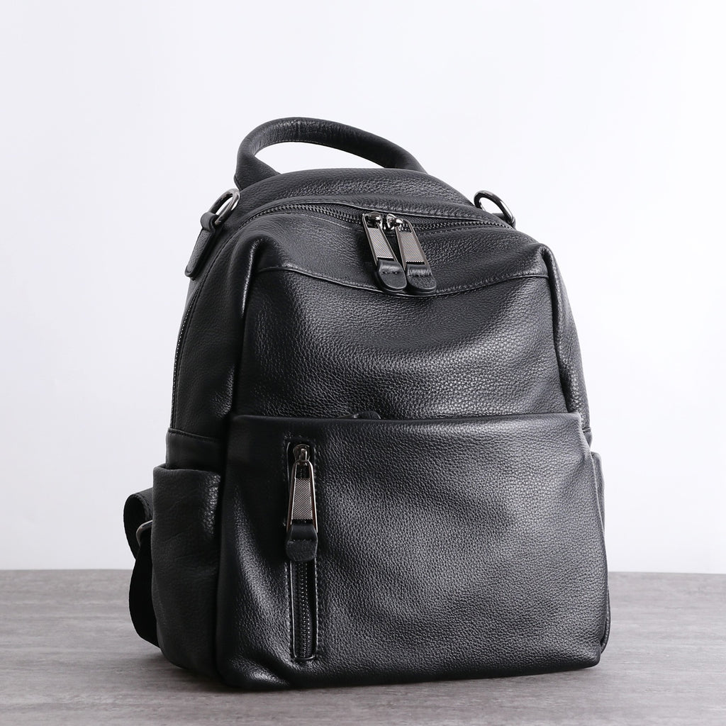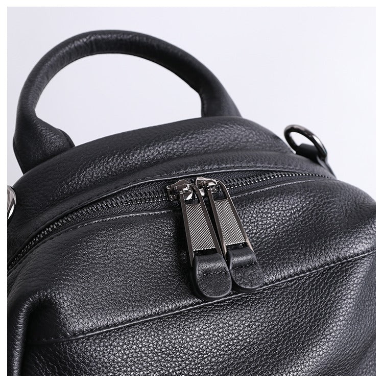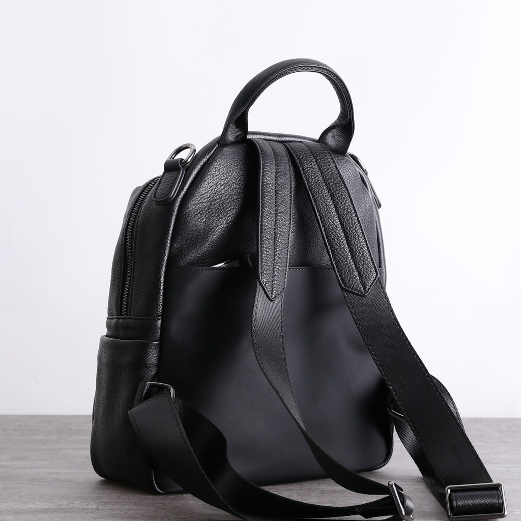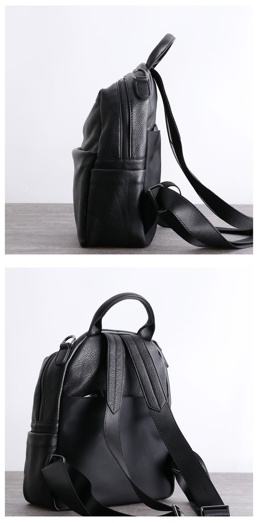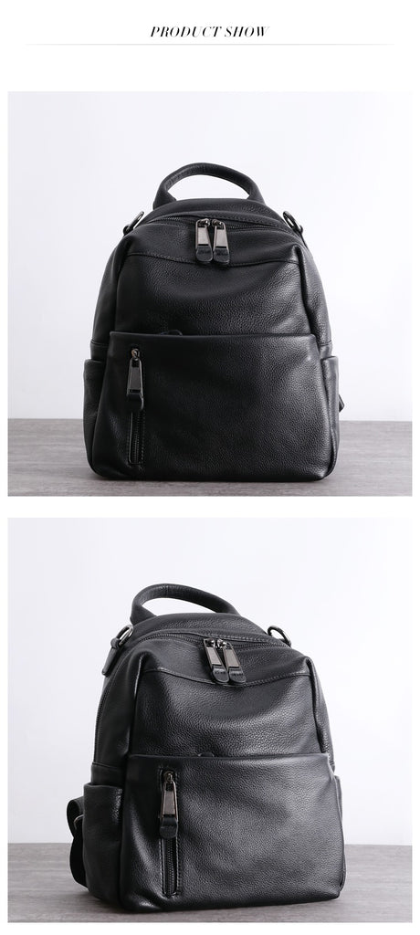 Design: Black Leather School Backpack Womens Cute College Backpack Purse Black Leather Travel Rucksack for Ladies