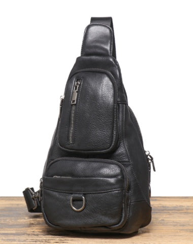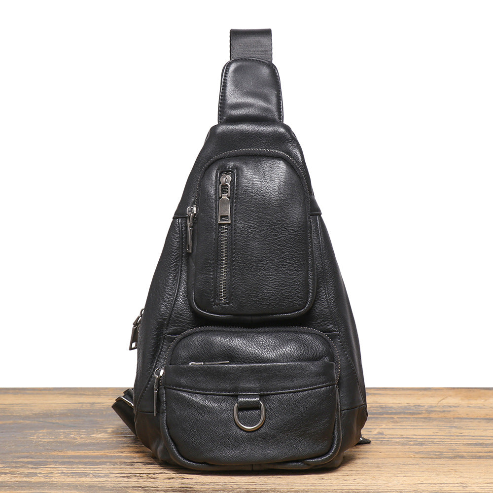 Style: Black Leather Sling Bag For Men Leather Sling Pack Black Mens Sling Pack