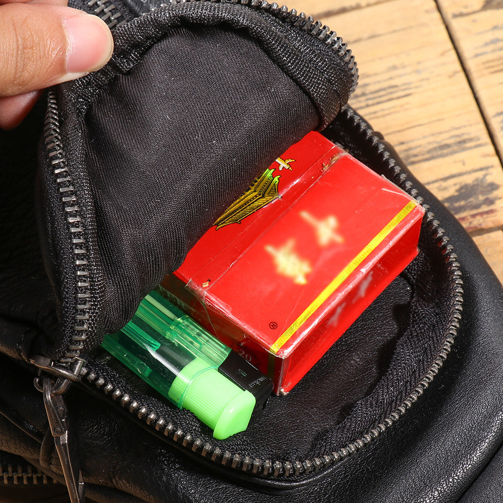 Slots: 4 zipper front slots, 1 back zip slot, 1 wallet and phone slot inside.