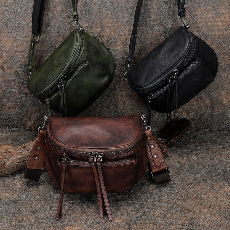 Design: Black Leather Womens Saddle Shoulder Bag Fanny Pack Handmade Crossbody Purse for Ladies