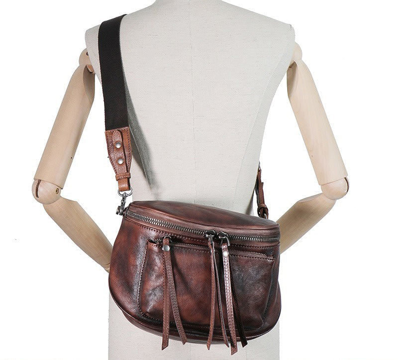 Style: Black Leather Womens Saddle Shoulder Bag Fanny Pack Handmade Crossbody Purse for Ladies