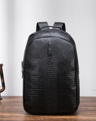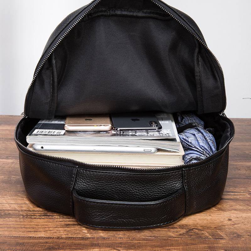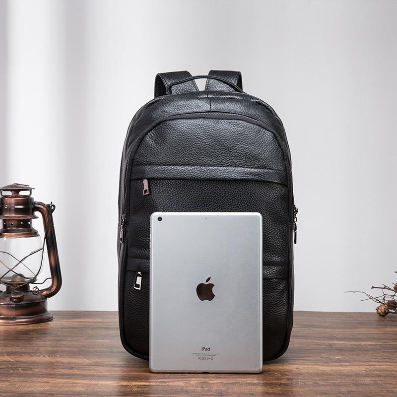 Black Mens Leather Laptop Backpack College Backpack Black Travel Backpack for Men