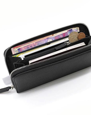 Style: Black Mens Leather Zipper Long Wallet Phone Long Bifold Wallet for Men
