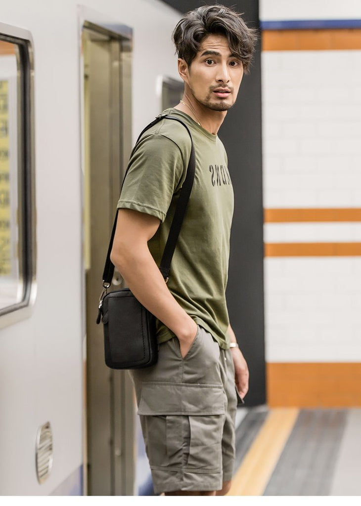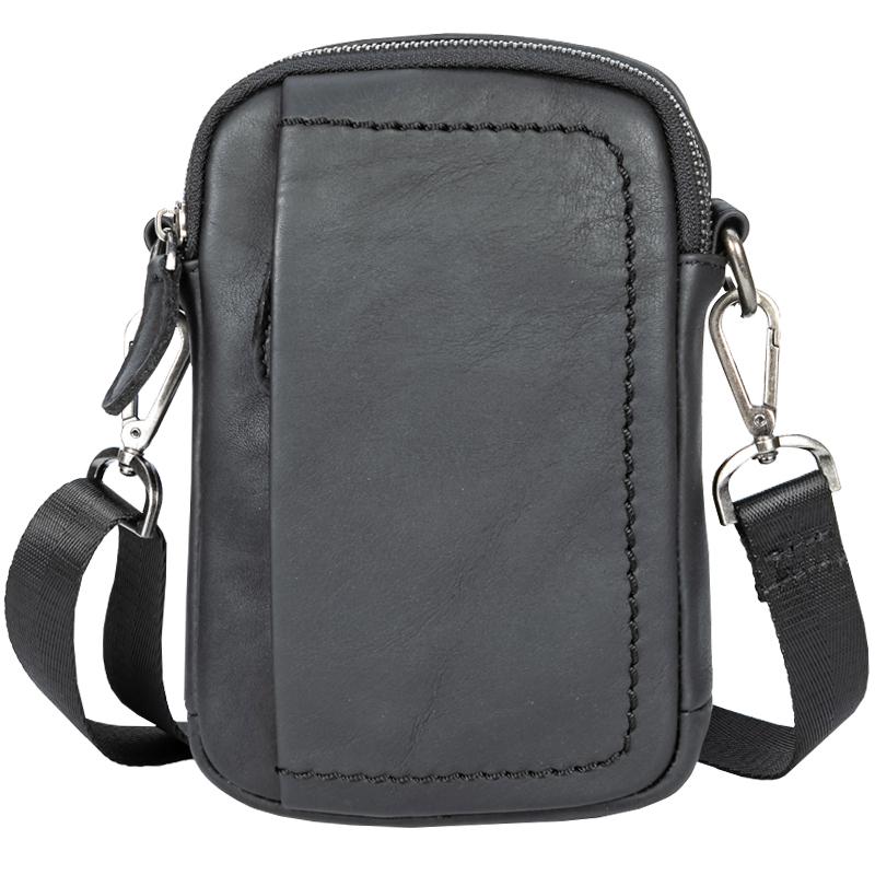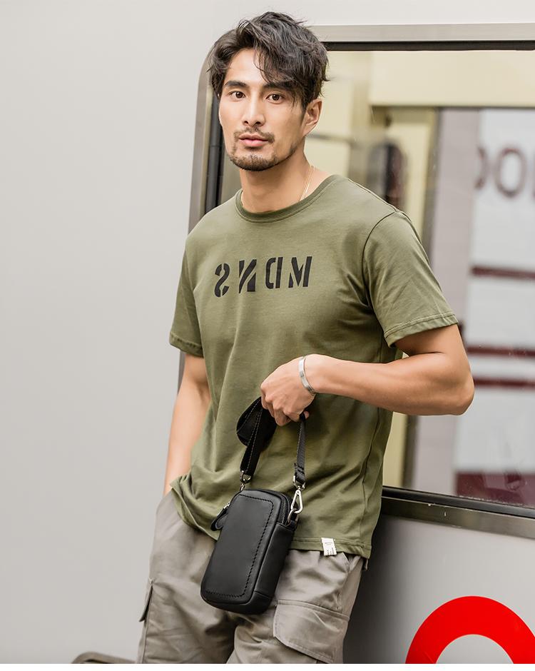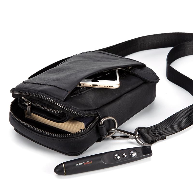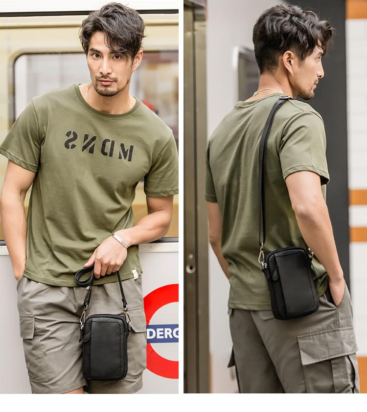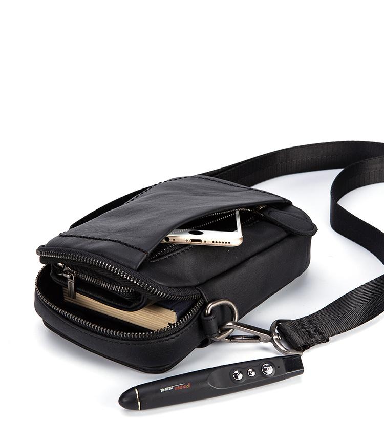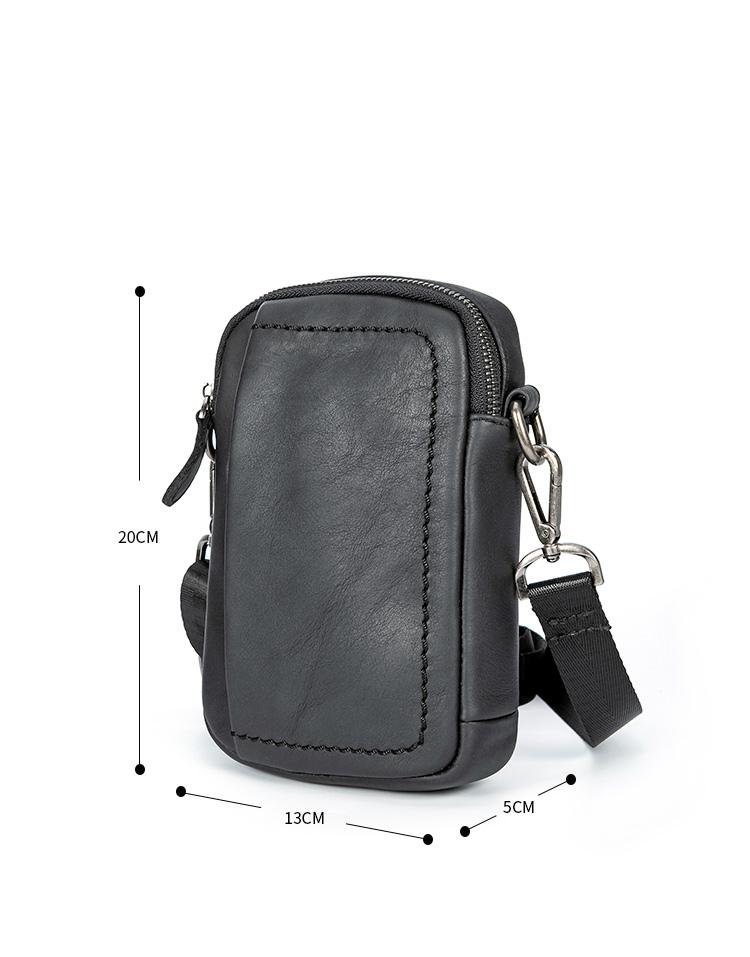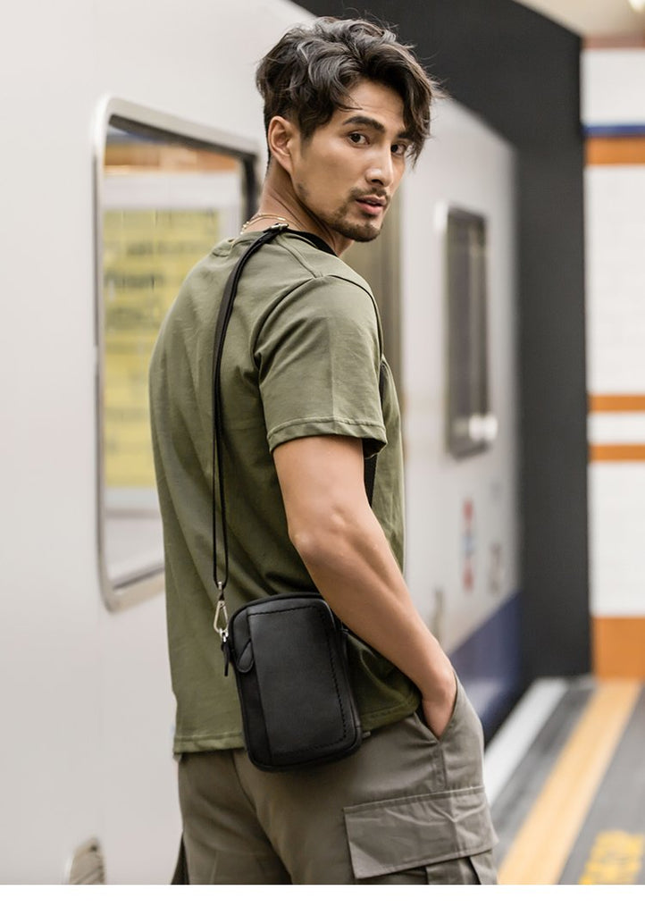 Design: Black Mini Leather Mens Soft Diagonal Bag Black Messenger Bags Side Bag Sling Bag for Men