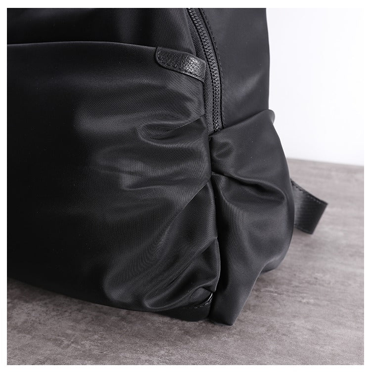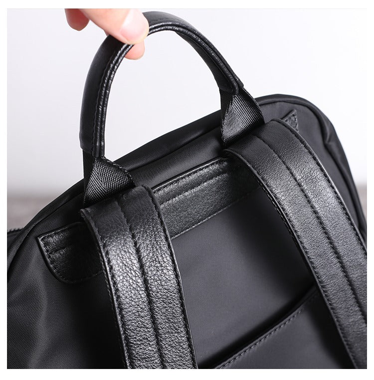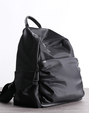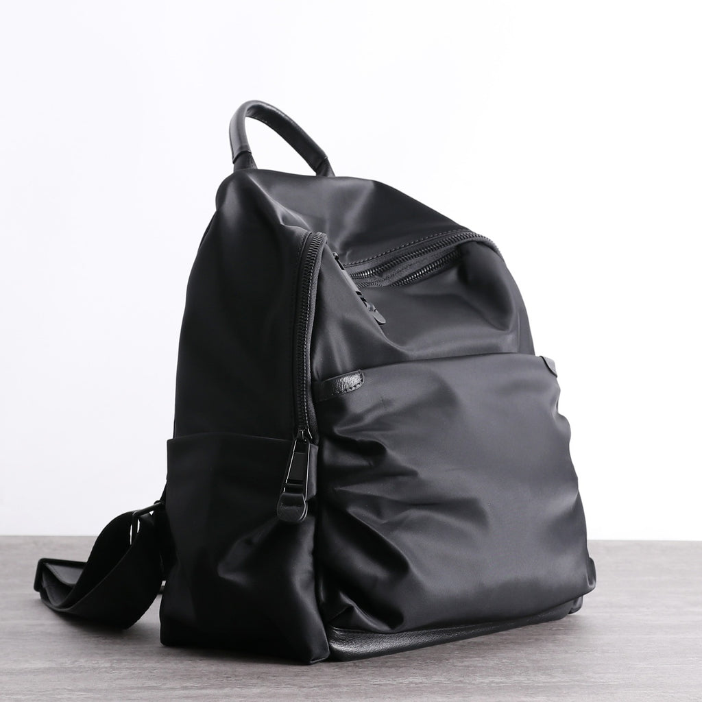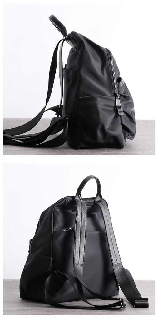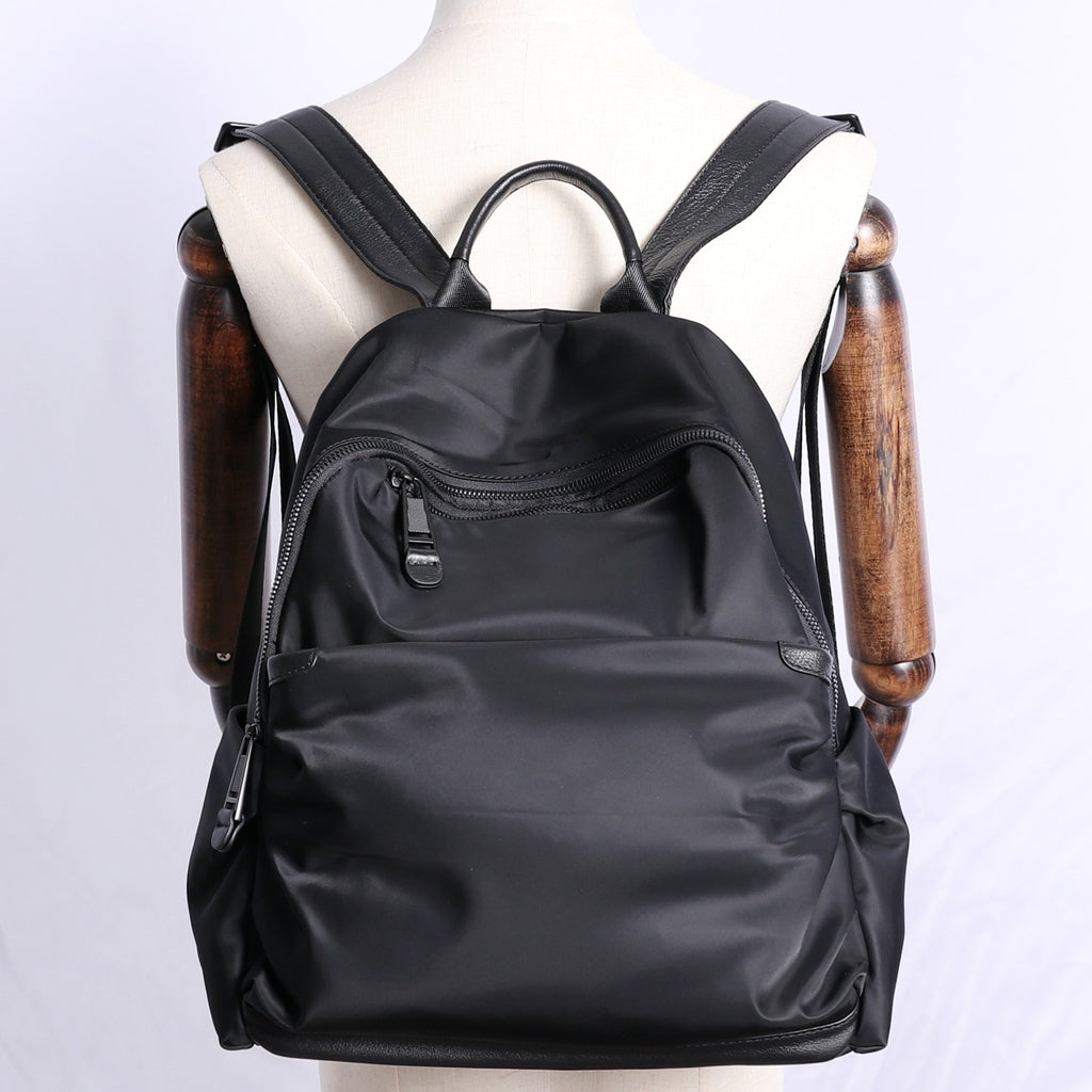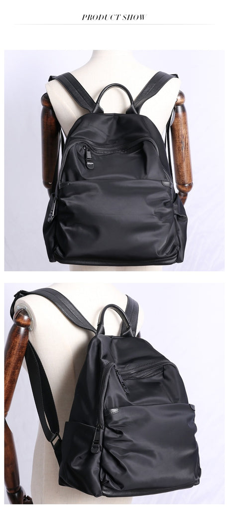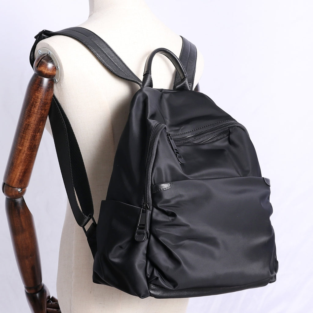 Black Nylon Backpack Womens School Backpack Purse Black Nylon Leather Travel Rucksack for Ladies