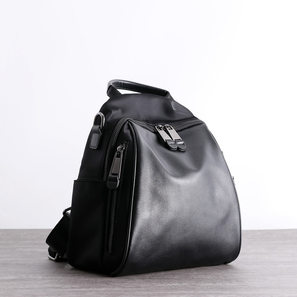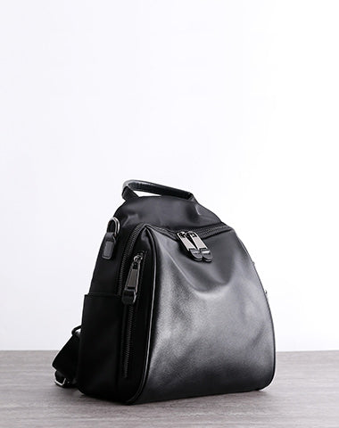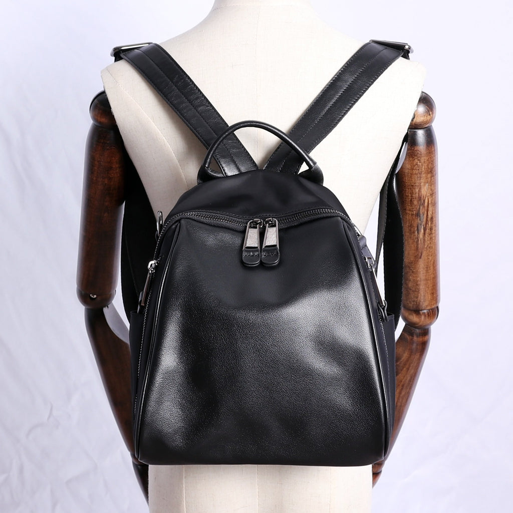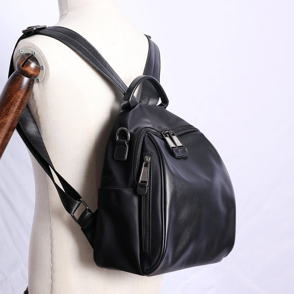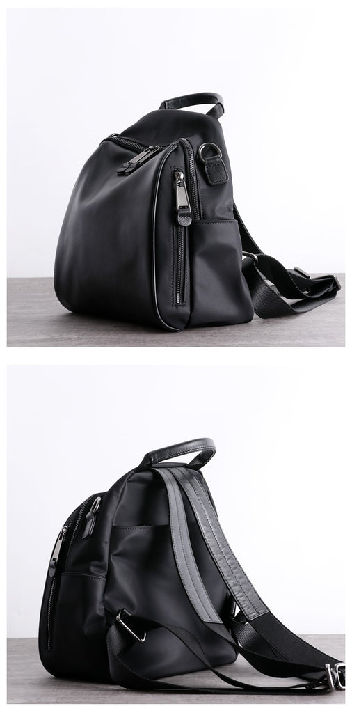 Design: Cute Black Nylon Satchel Backpack Womens School Backpack Purse Black Nylon Leather Travel Rucksack for Ladies