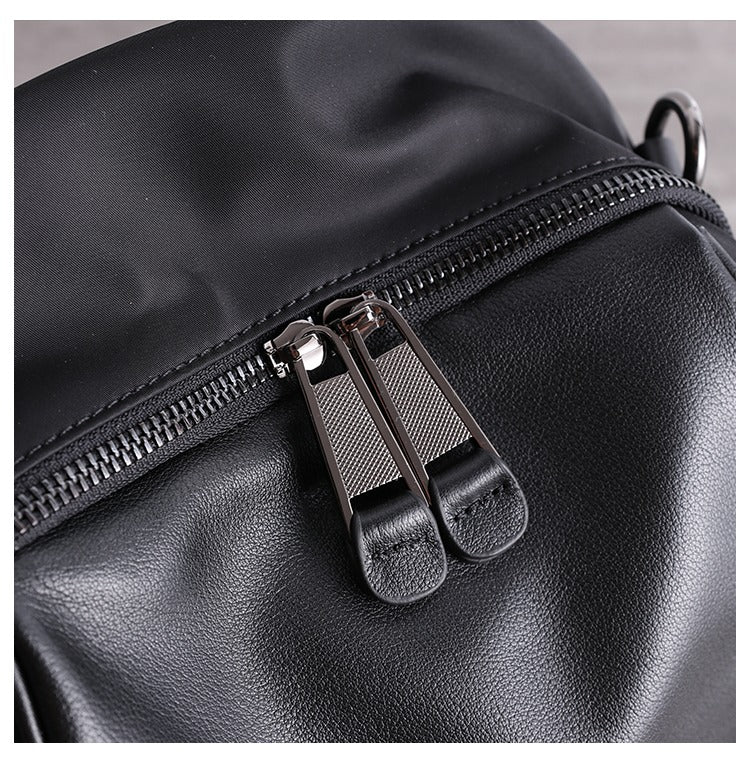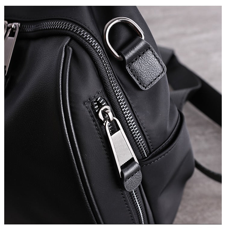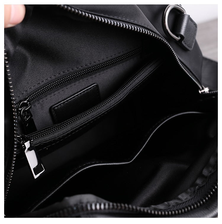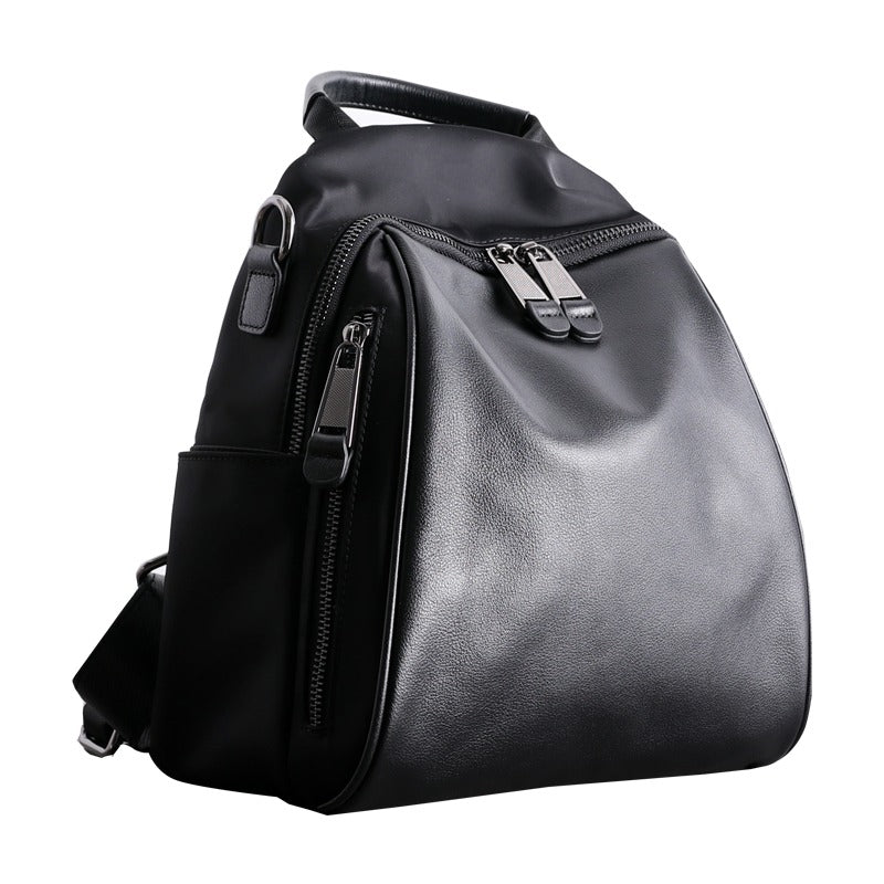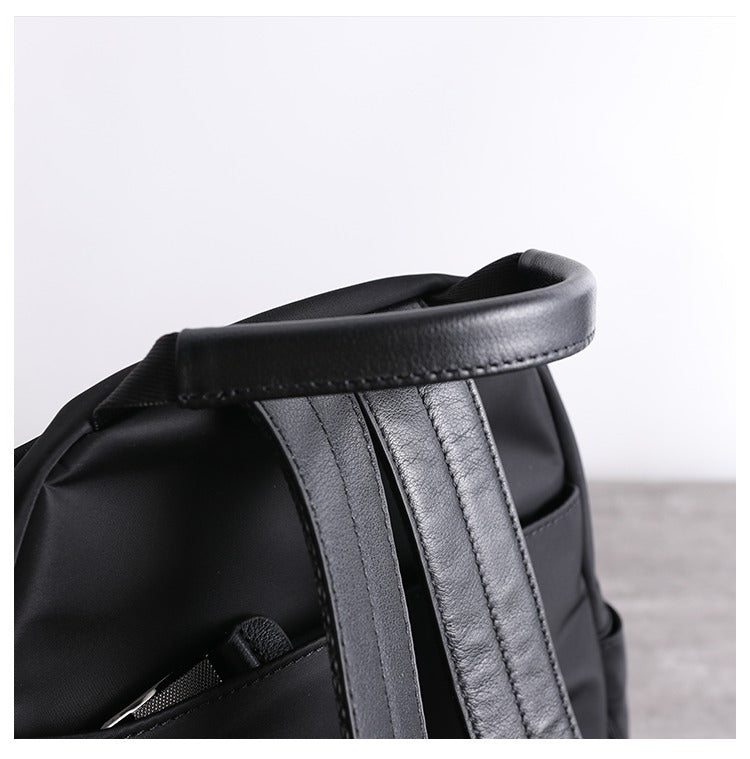 Design: Cute Black Nylon Satchel Backpack Womens School Backpack Purse Black Nylon Leather Travel Rucksack for Ladies