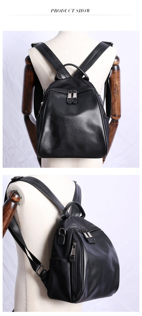 Style: Cute Black Nylon Satchel Backpack Womens School Backpack Purse Black Nylon Leather Travel Rucksack for Ladies