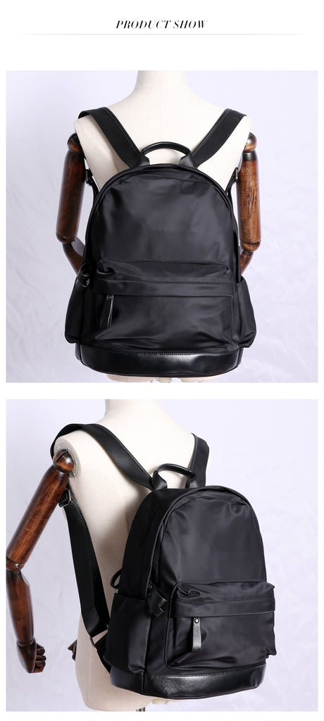 Style: Nylon Backpacks Womens School Backpack Purse Black Nylon Leather Travel Rucksack for Ladies